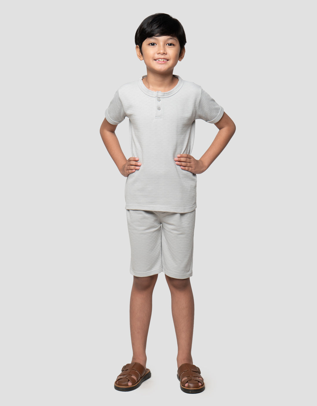 Little M Henley Tekstur Pakaian Setelan Anak Laki-laki