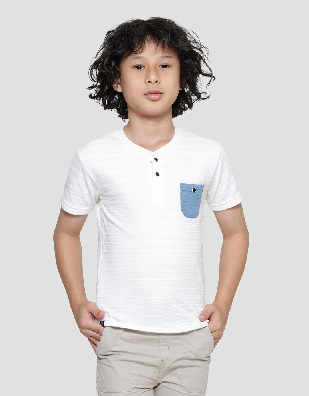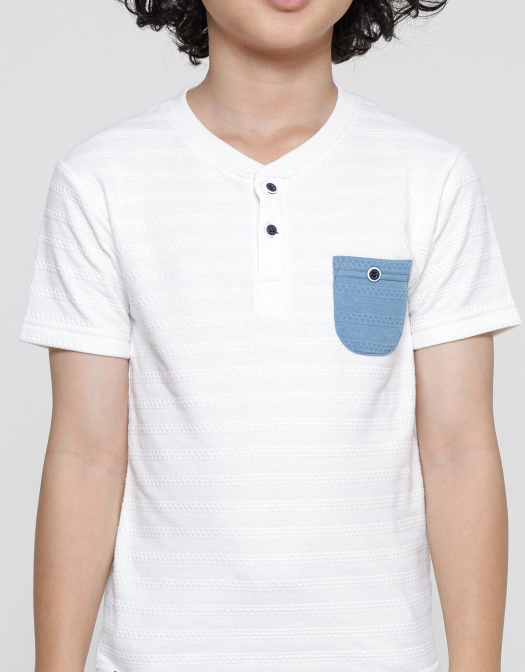 Little M Henley Texture Spandex Boys Short Sleeve T-Shirt