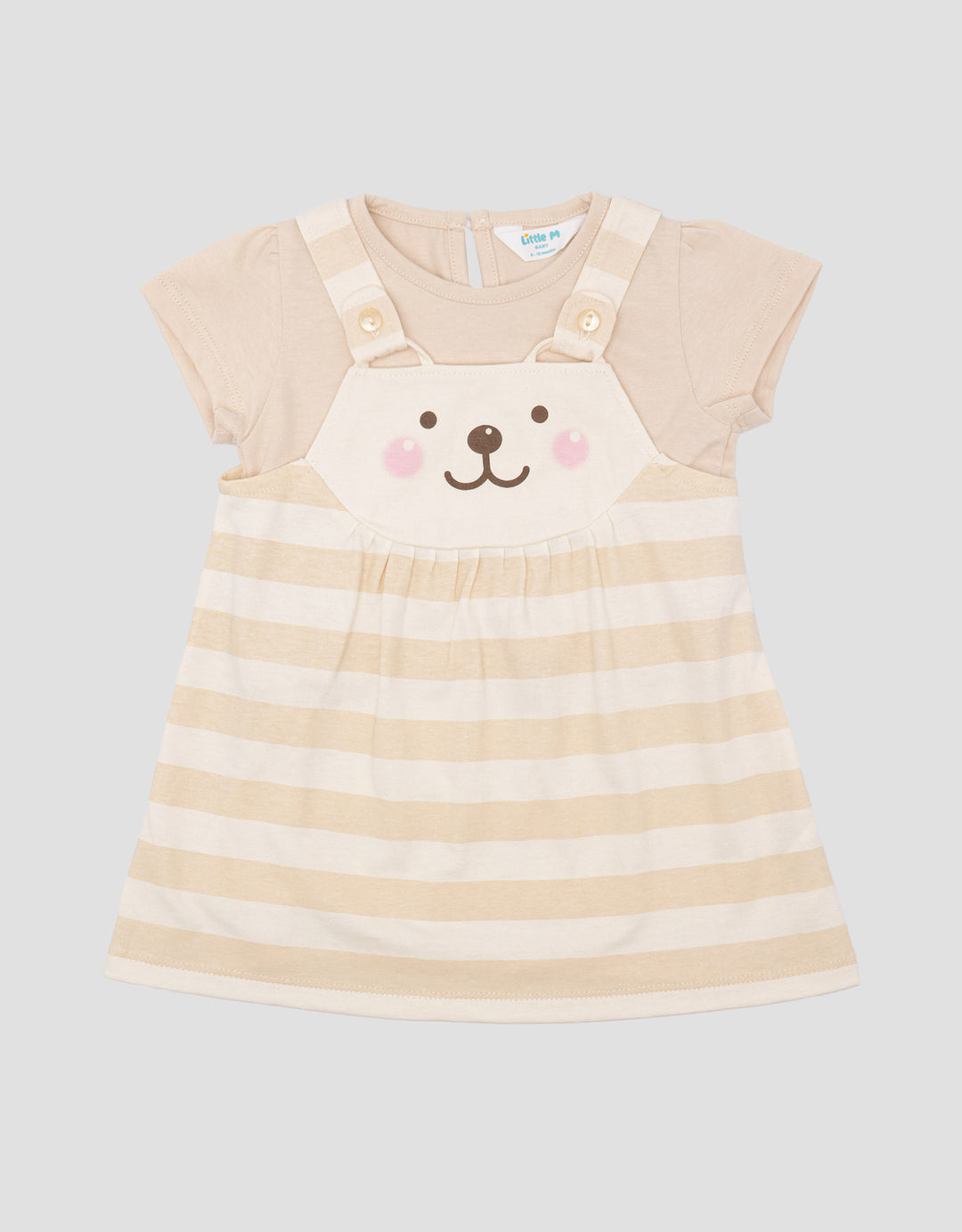 Little M Icon Bear Stripe Midi Dress Anak Perempuan