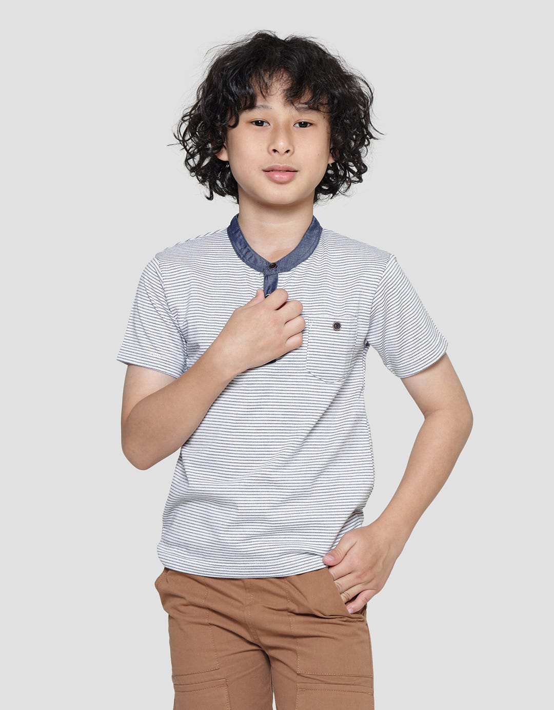 Little M Boys Short Sleeve Henley Stripe Yarndyed T-Shirt