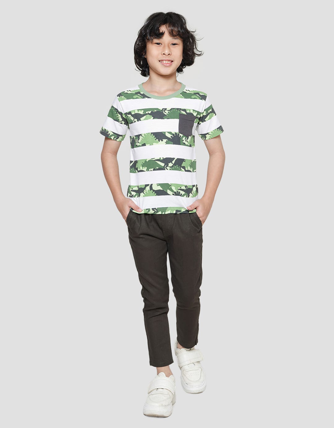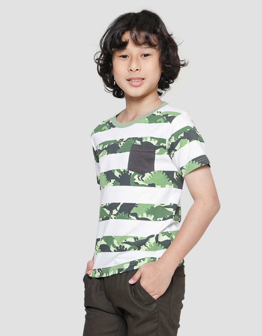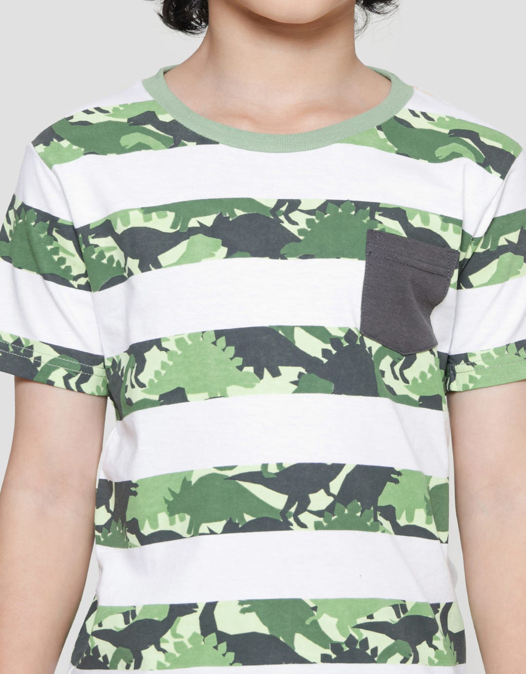 Little M Boys Short Sleeve T-shirt Print Stripe Dino Pocket