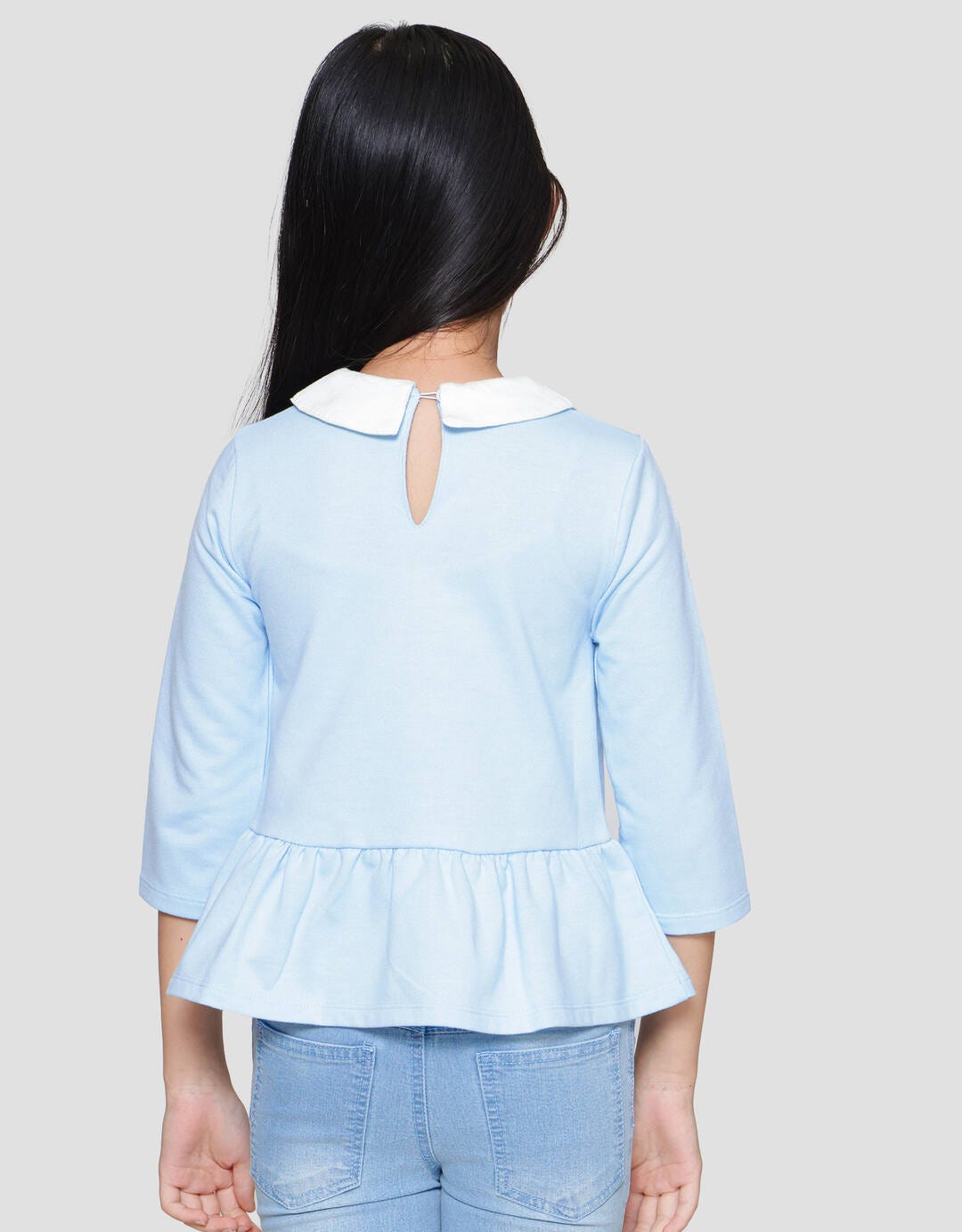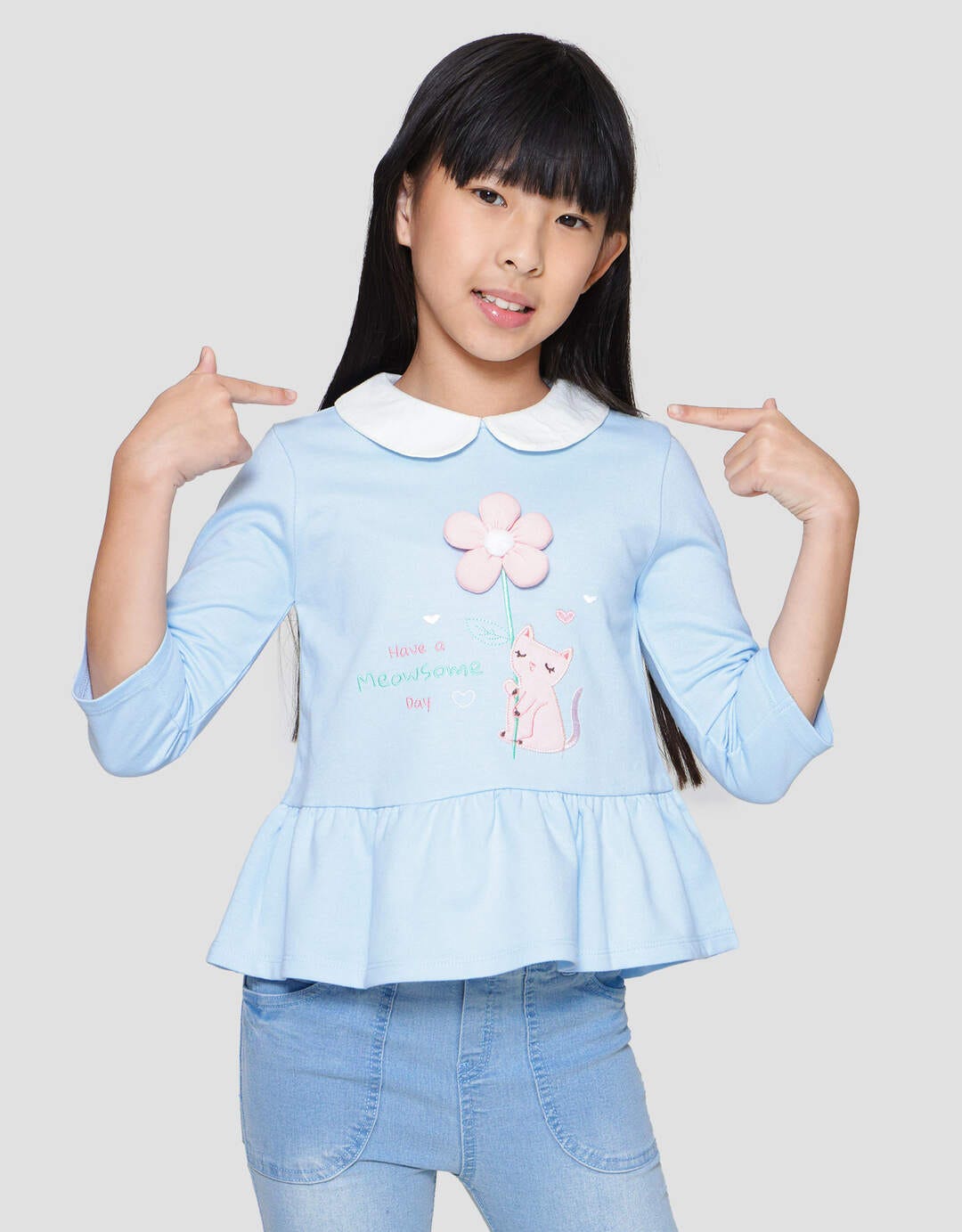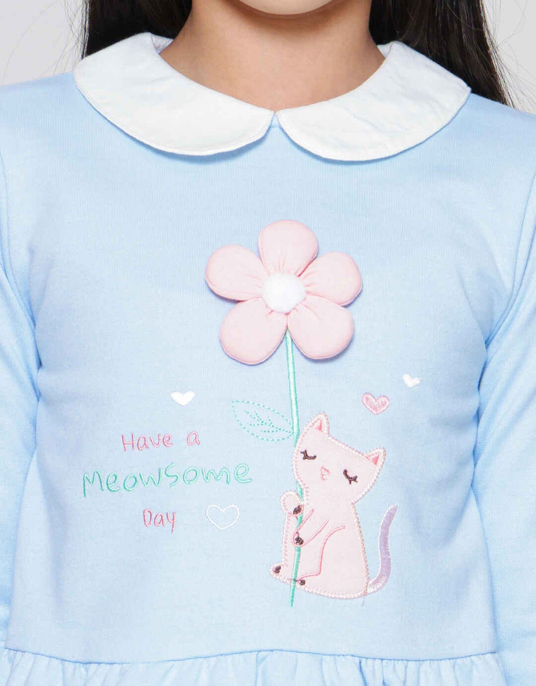 Little M Soft Floral Applique Collar Girls Long Sleeve T-Shirt