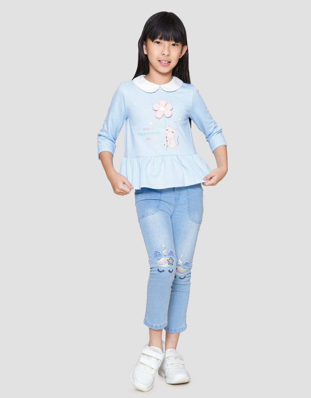 Girls' T-shirts to make your little one's appearance more charming. With a casual and simple model, suitable to be combined with various bottoms that children like. With simple print details and quality materials, it will be comfortable to wear all day long.