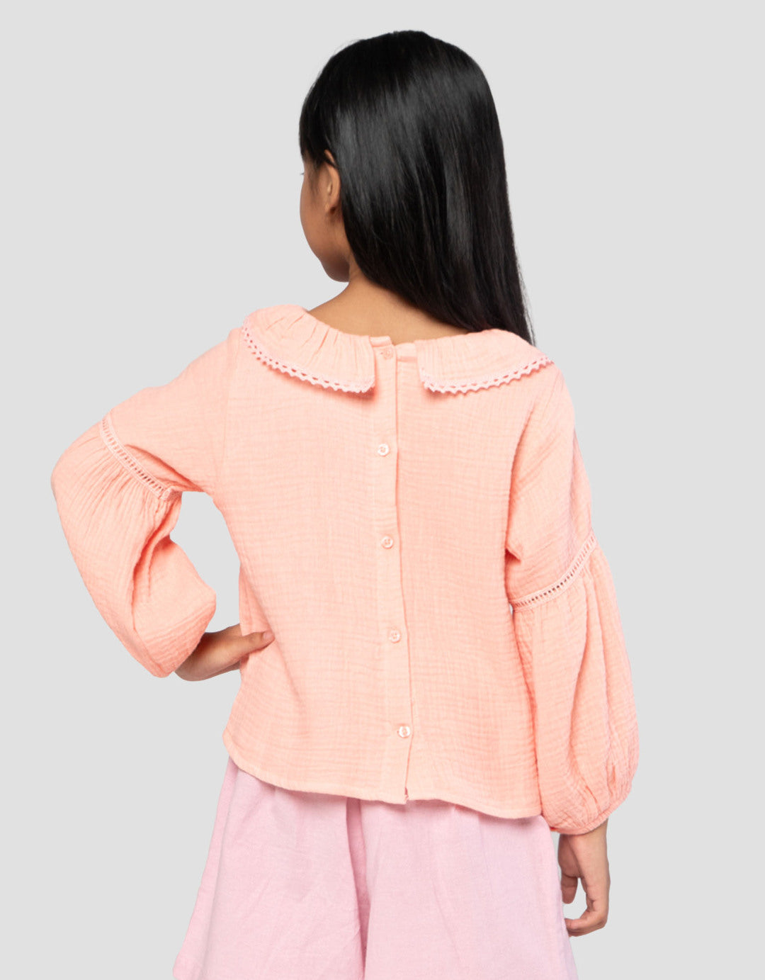 Blouse anak perempuan dengan model yang simple dan casual, cocok untuk digunakan pada moment keseharian dalam beraktivitas. Bahan yang berkualitas akan nyaman saat digunakan sepanjang hari.