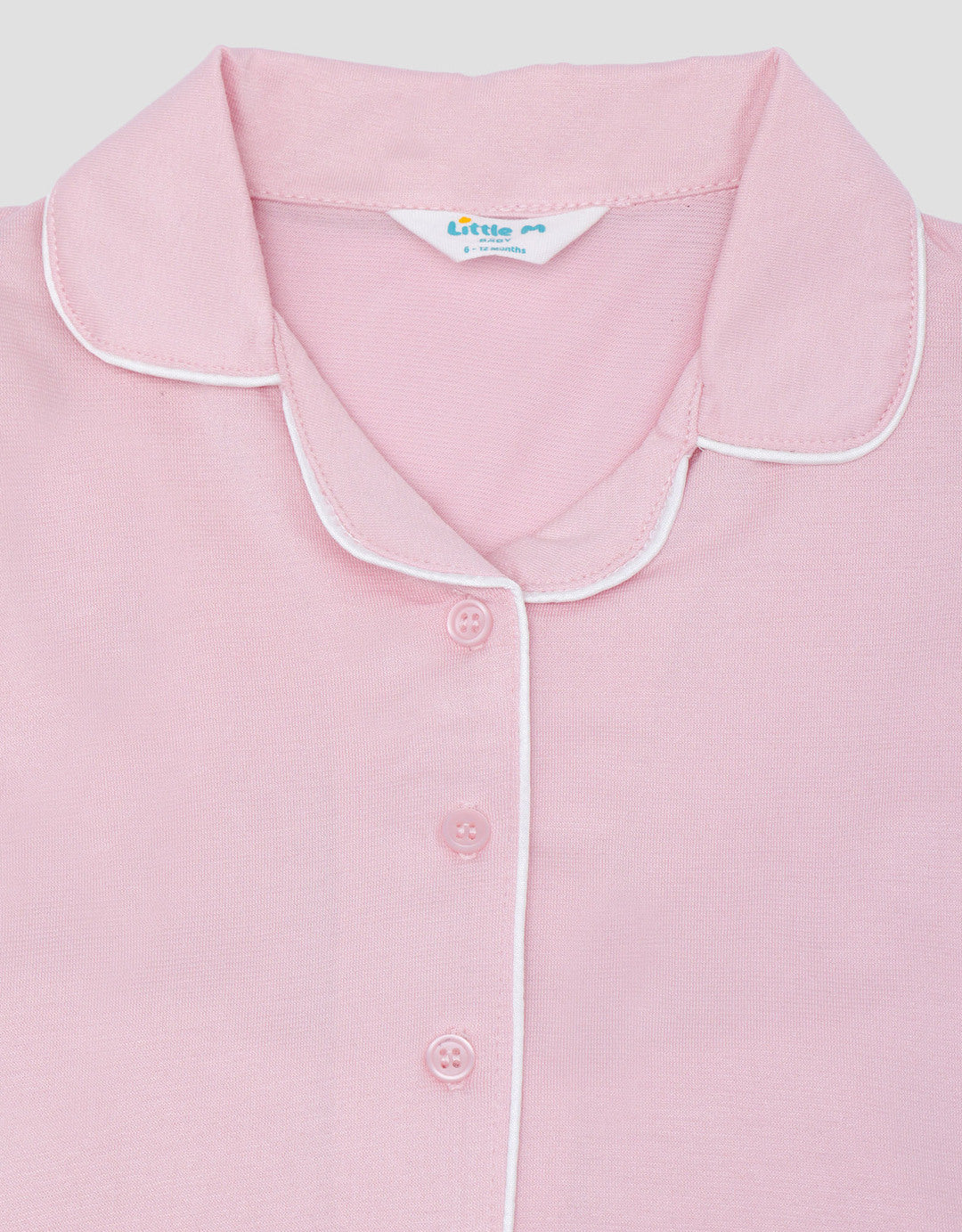 Little M Kerah Polos Rayon Logo Setelan Piyama Bayi
