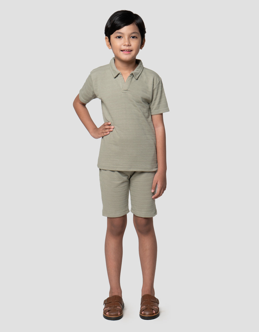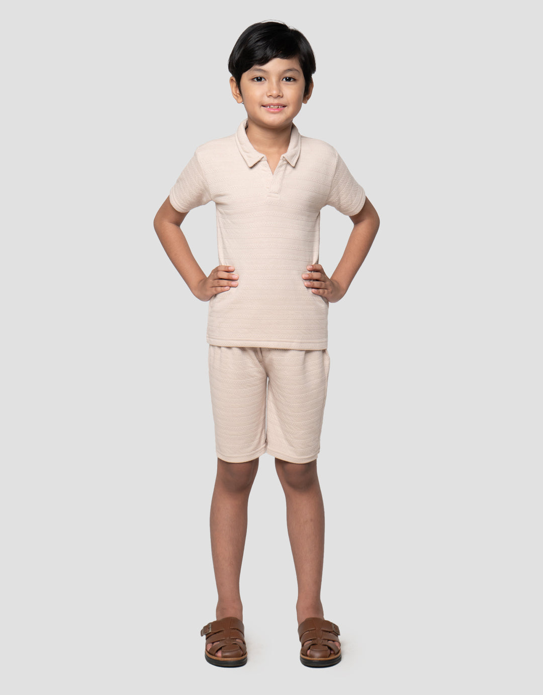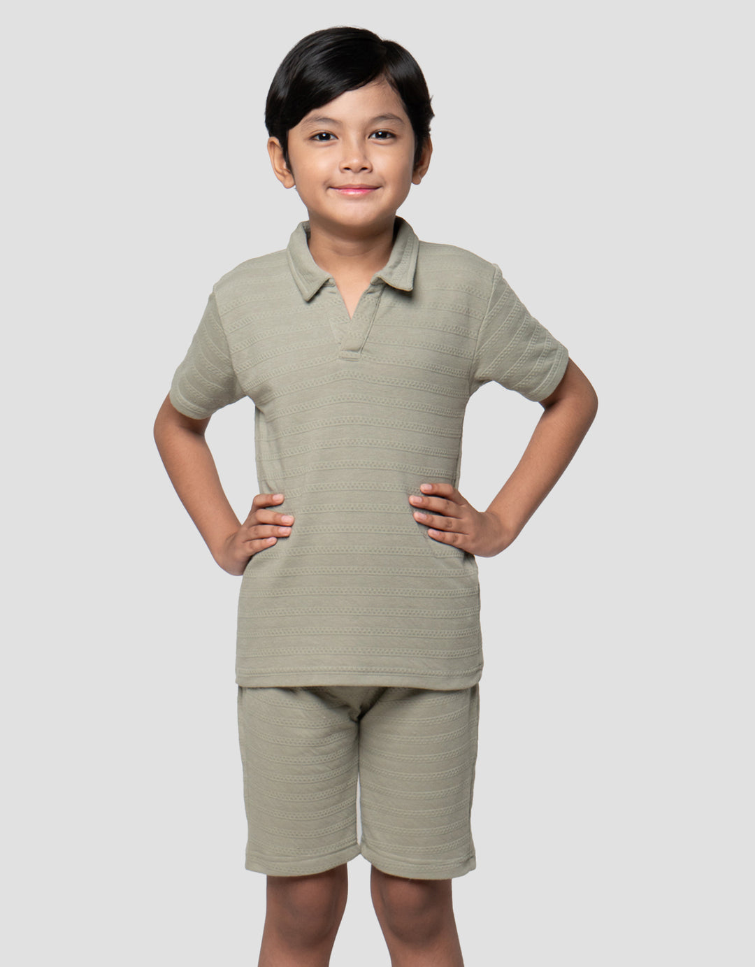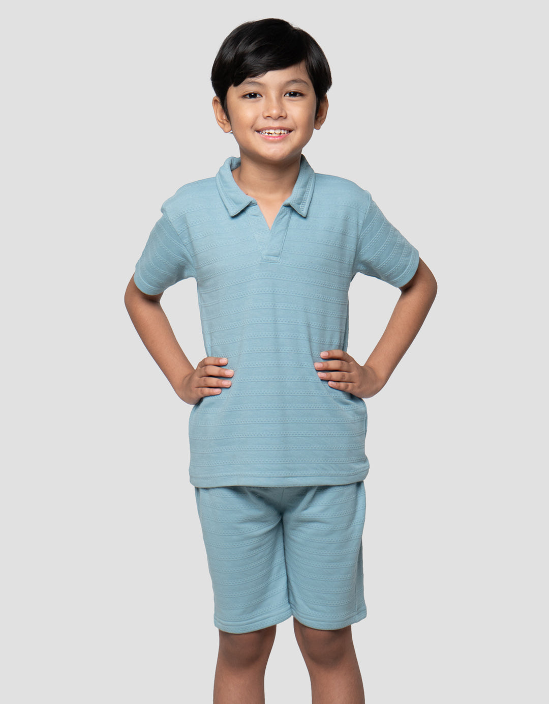 Little M Kerah Tekstur Pakaian Setelan Anak Laki-laki