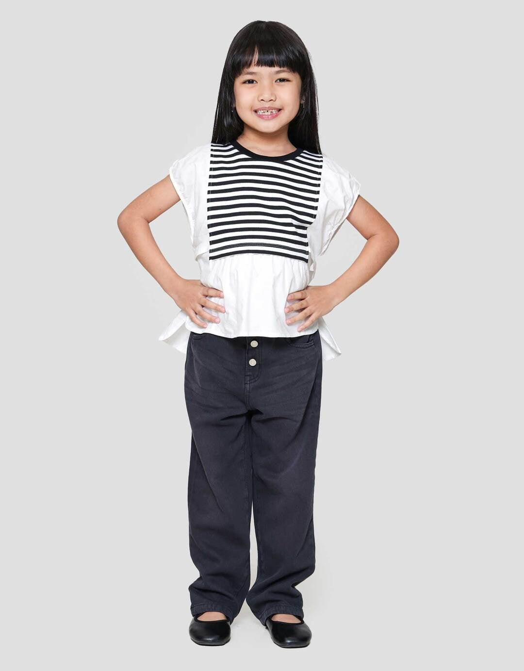 Little M Kobi Salur Kemeja Lengan Pendek Anak Perempuan