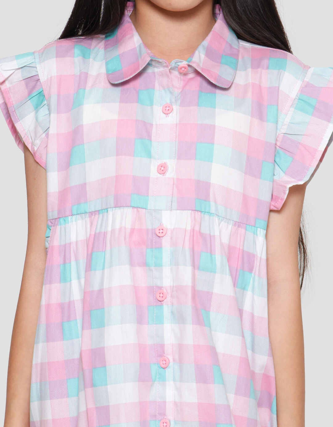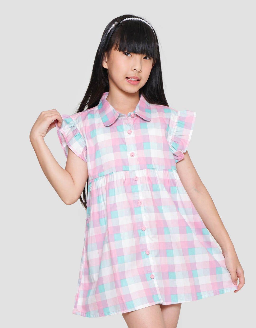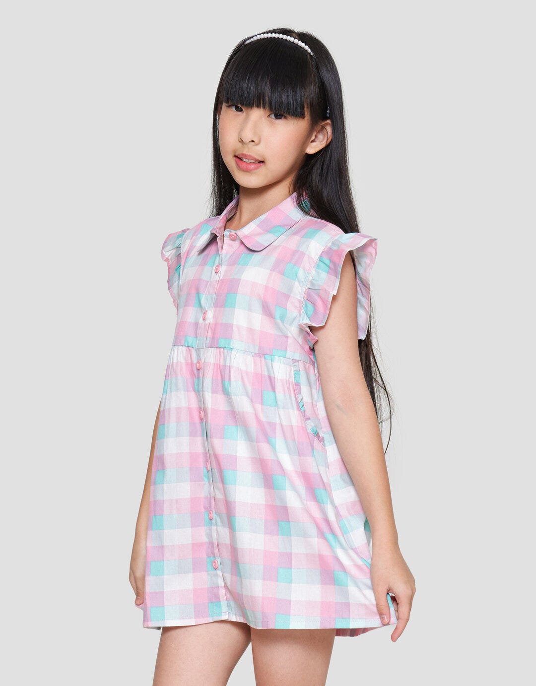 Little M Box Collar Ruffle Sleeve Midi Dress for Girls