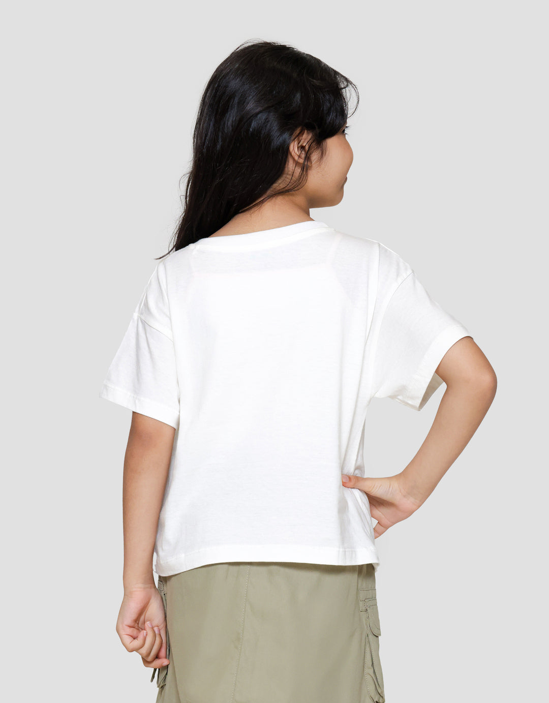 Kaos anak perempuan dengan model yang simple dan casual, cocok untuk dijadikan outifit keseharian saat anak beraktifitas. Bahan yang berkualitas akan nyaman saat digunakan sepanjang hari.