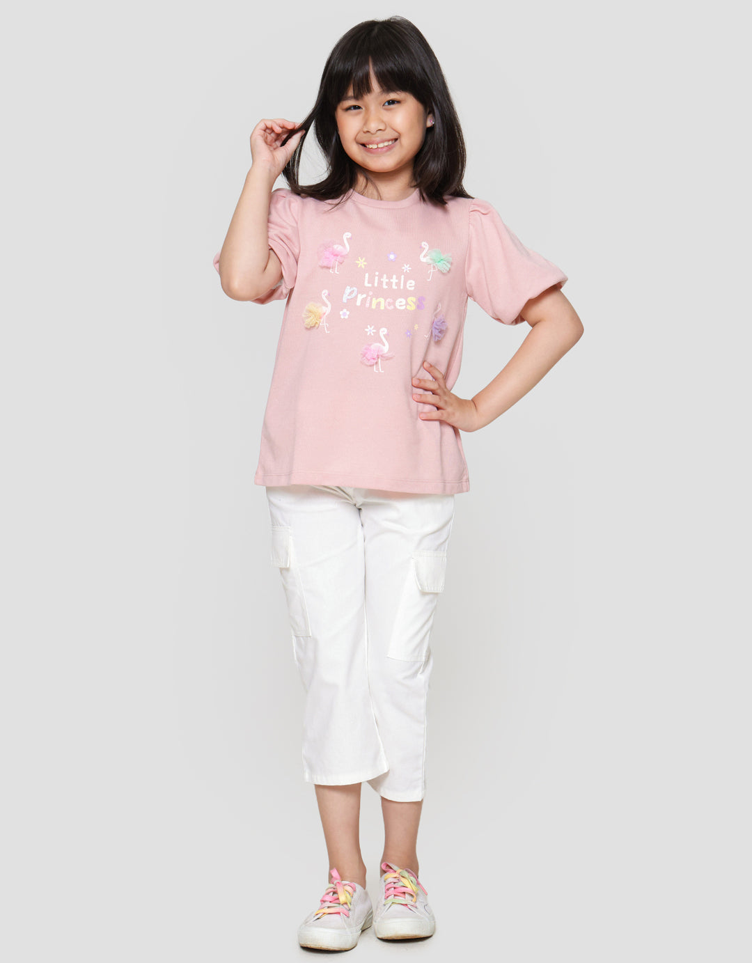 Little M Lengan Balon Aplikasi Flamingo Kaos Anak Perempuan