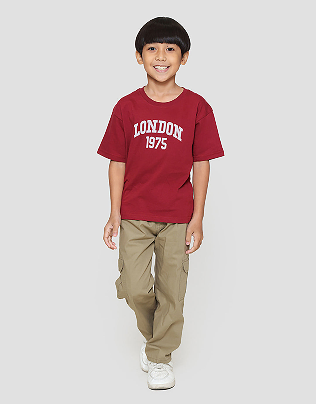 Kaos anak laki-laki dengan design yang simple dan casual, cocok untuk digunakan anak pada moment berharga mereka untuk menunjang penampilan anak menjadi lebih menawan.