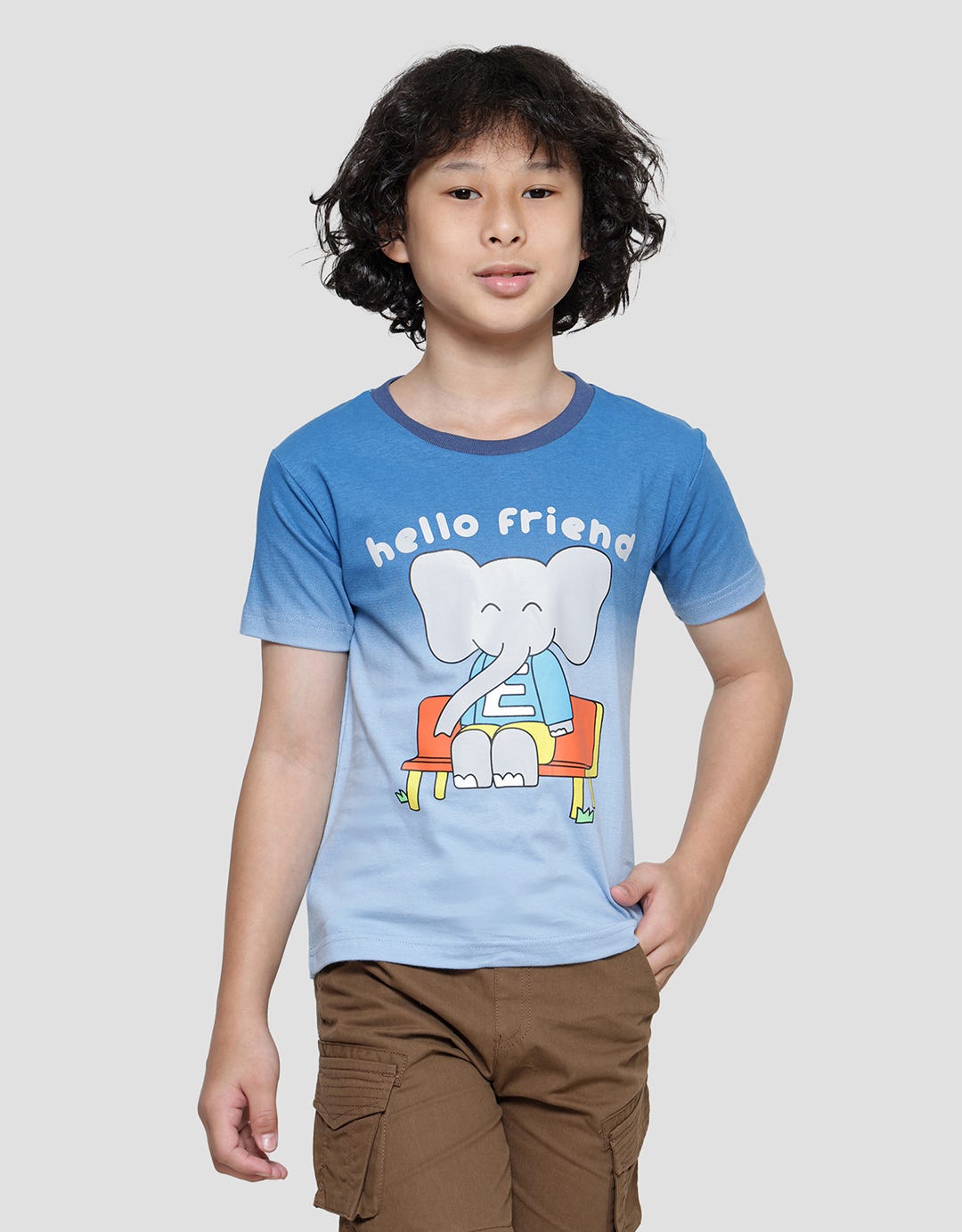 Little M Ombre Hello Friends Boys Short Sleeve T-Shirt