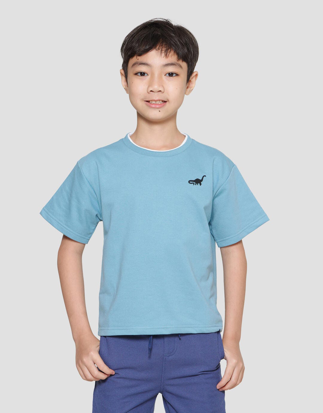 Little M Oversize Baby Terry Patch Dino 2 Boys Short Sleeve T-Shirt