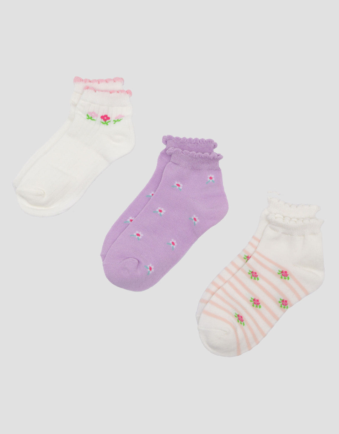 Little M Pack Of 3 Flower Kaus Kaki Bayi