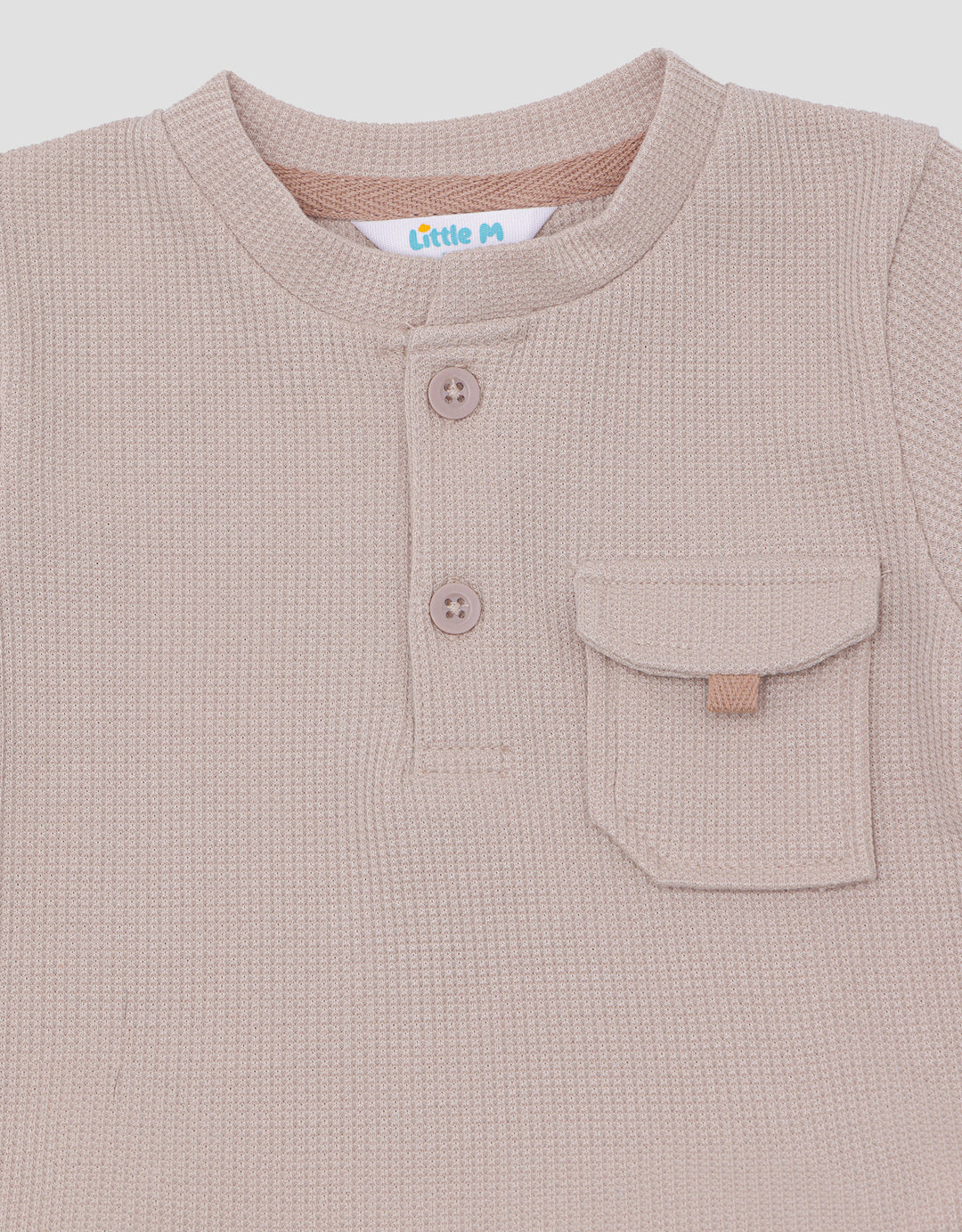 Little M Raglan Waffle With Woven Boys Clothing Set
