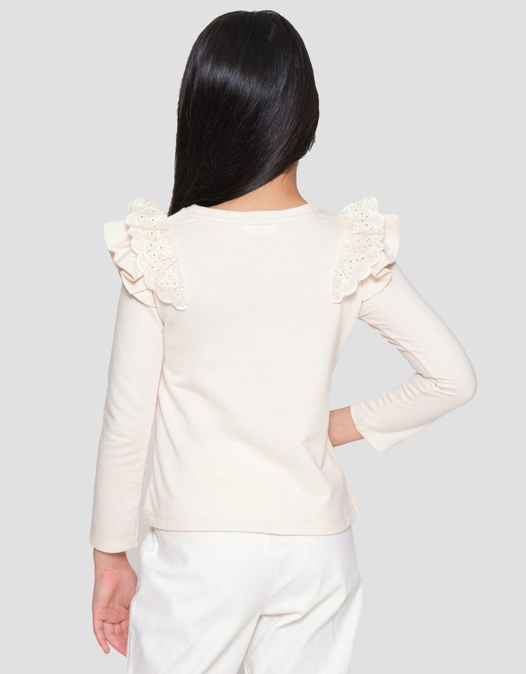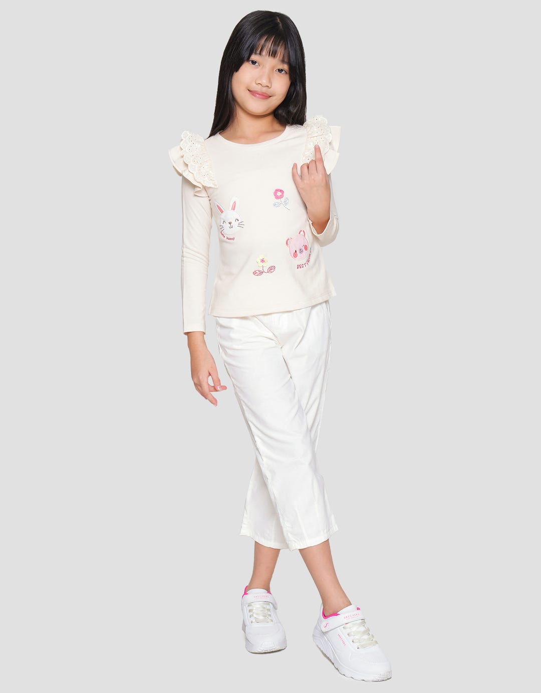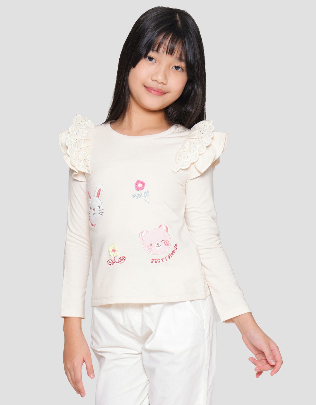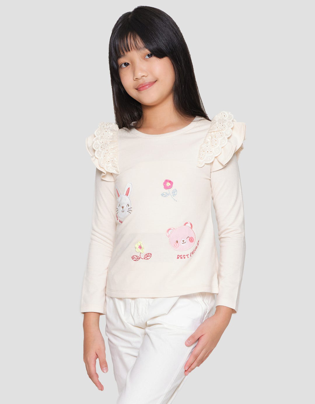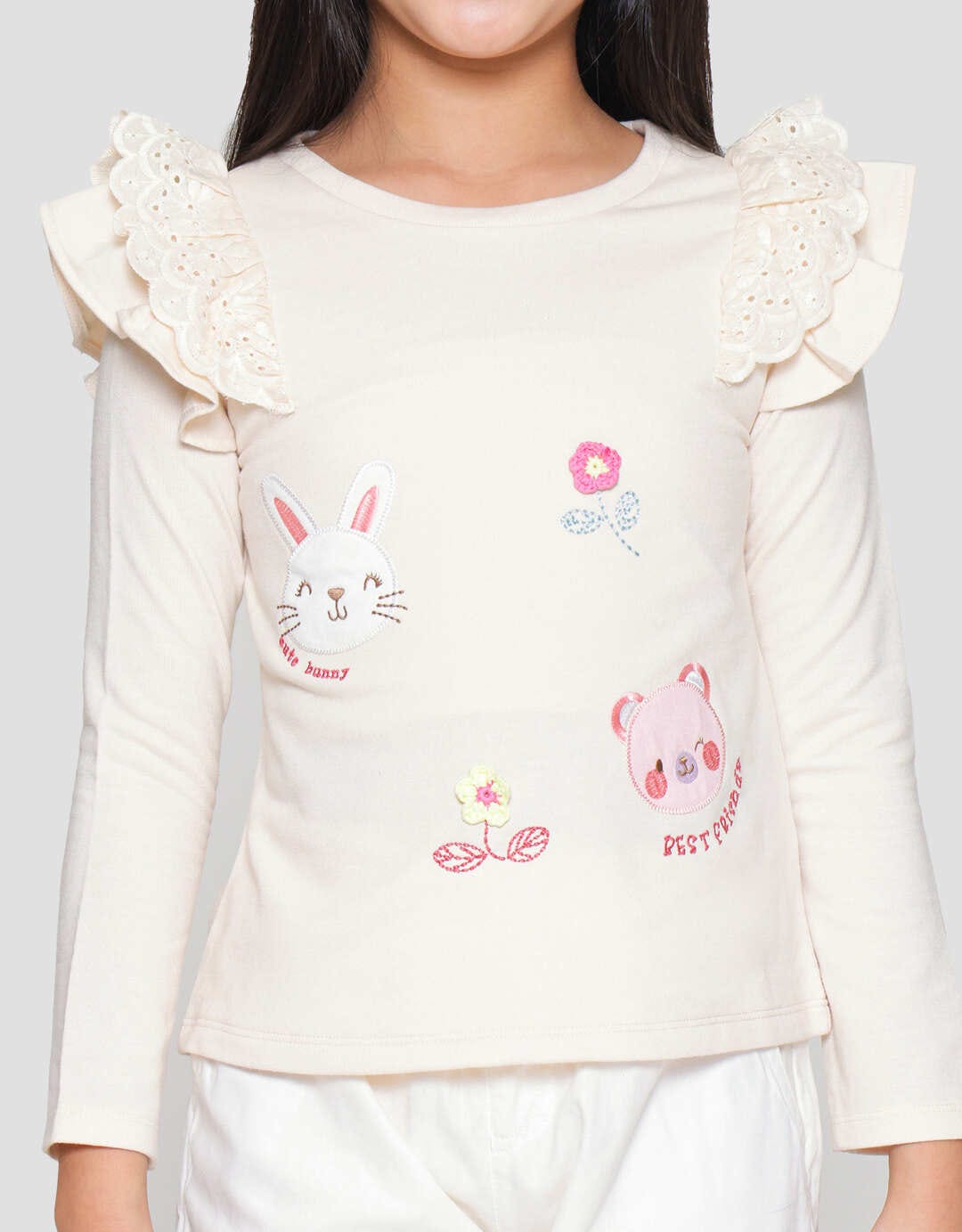 Little M Ruffle Lace Bunny Bear Application Long Sleeve T-Shirt for Girls