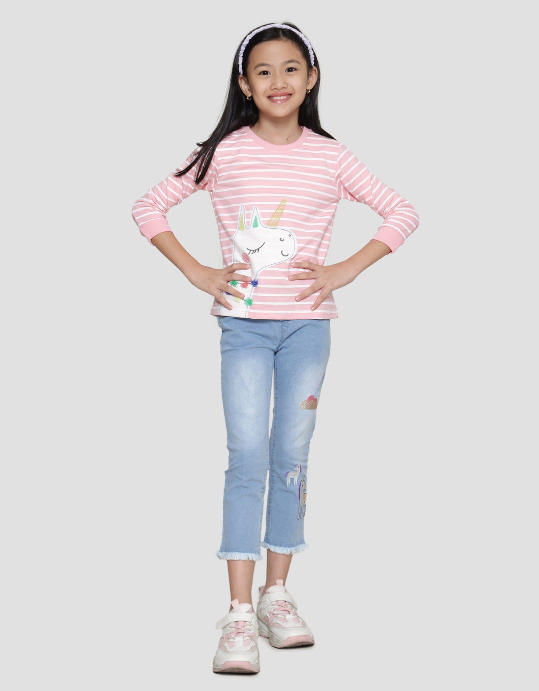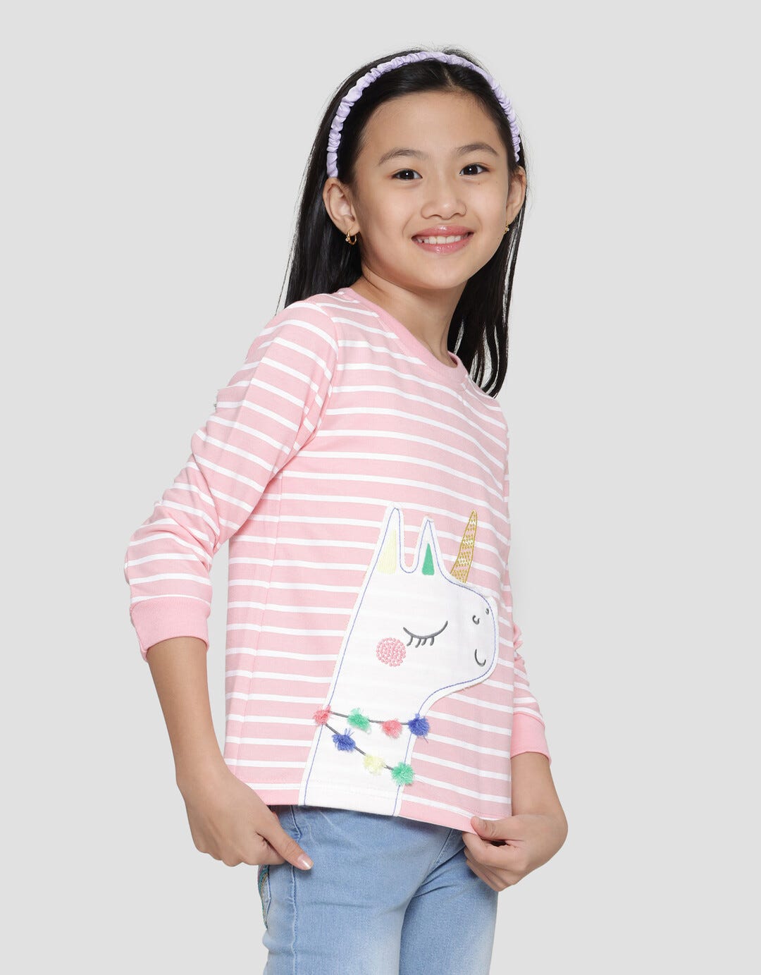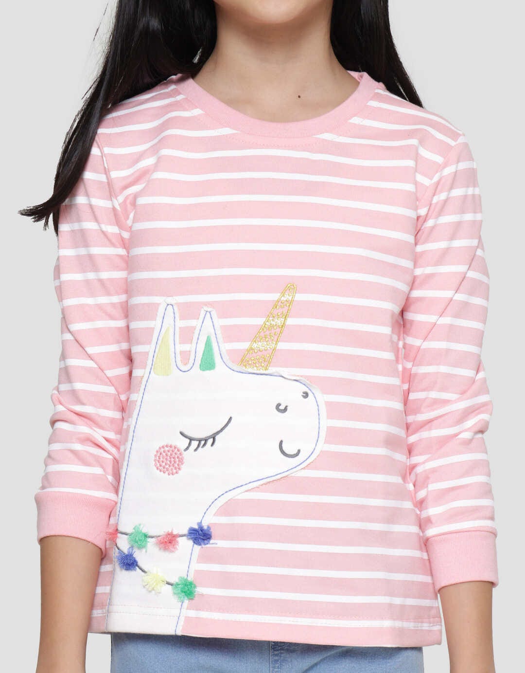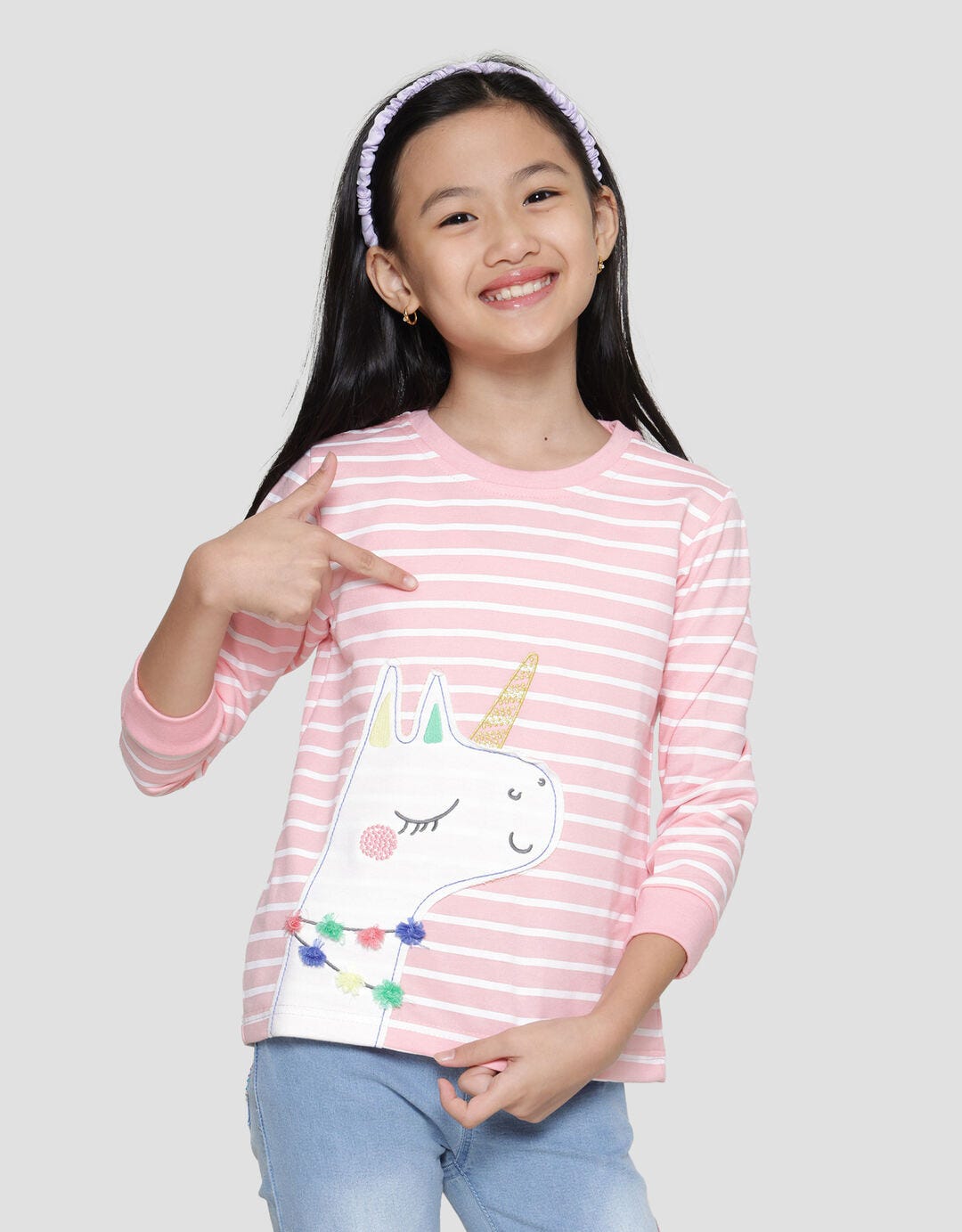 Little M Unicorn Embroidery Stripes Long Sleeve T-Shirt for Girls