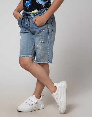 Little M Short Pants Denim Print Splash Destroyed Unfinished