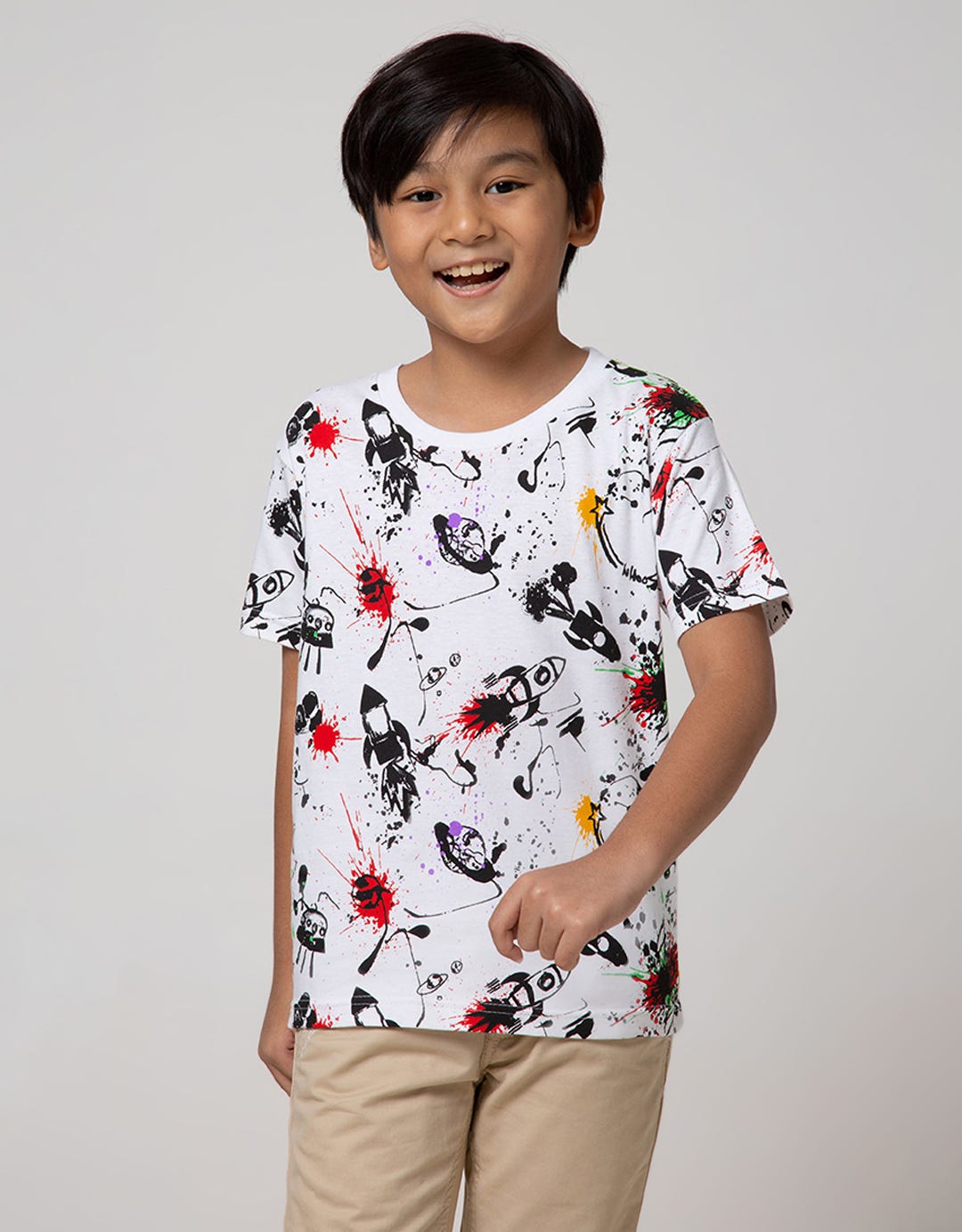 Little M Short Sleeve T-Shirt Fullprint Space Rocket Splash