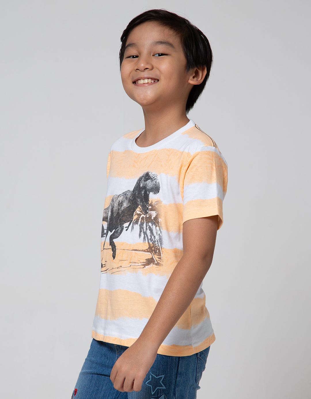 Little M Short Sleeve T-Shirt Fullprint Stripe Ombre Dino
