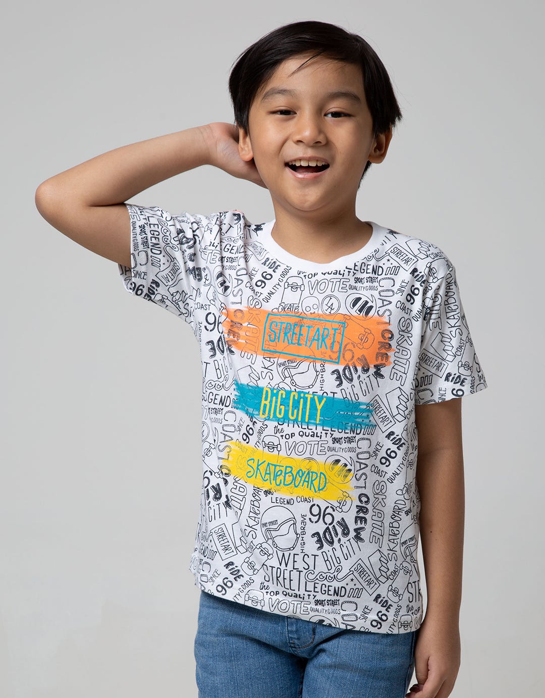 Little M Short Sleeve T-shirt Fullprint Typography Brushstroke