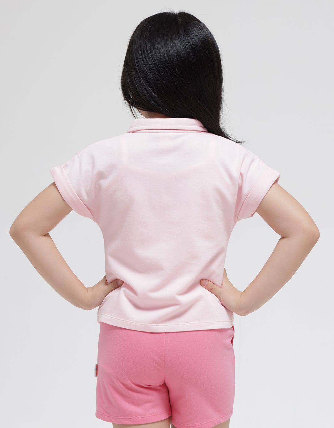 Little M Short Sleeve T-Shirt Zipper Collar Two Pockets