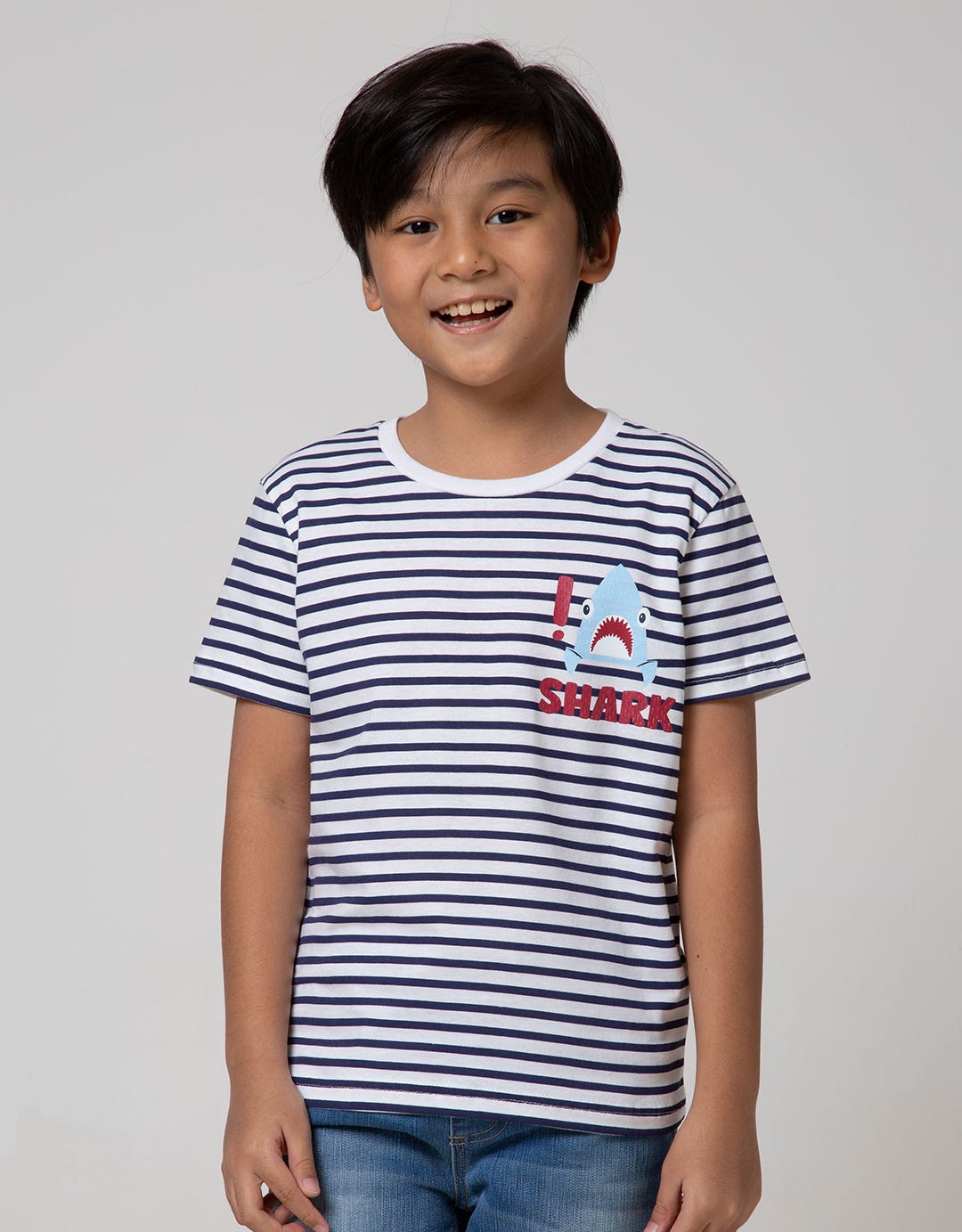 Little M Short Sleeve T-Shirt Stripe Fp Shark Print Embossed