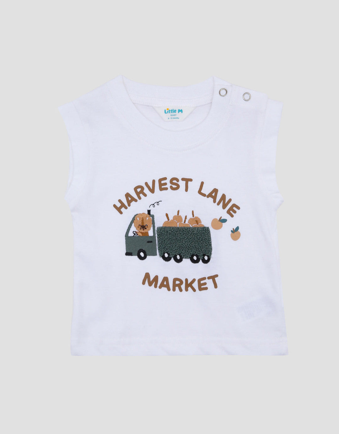 Little M Sleeveless Embro Truck Fruits Print Kaos Bayi