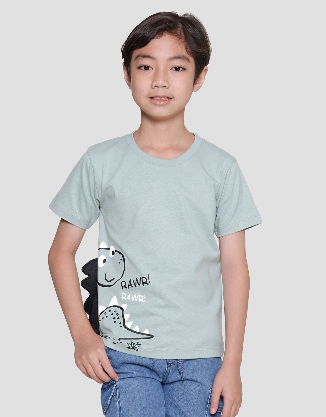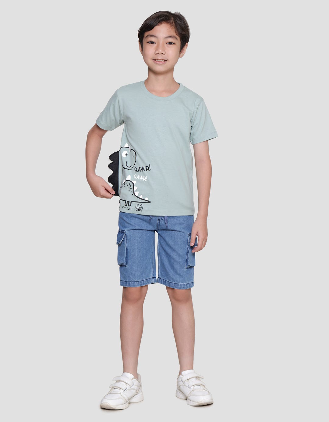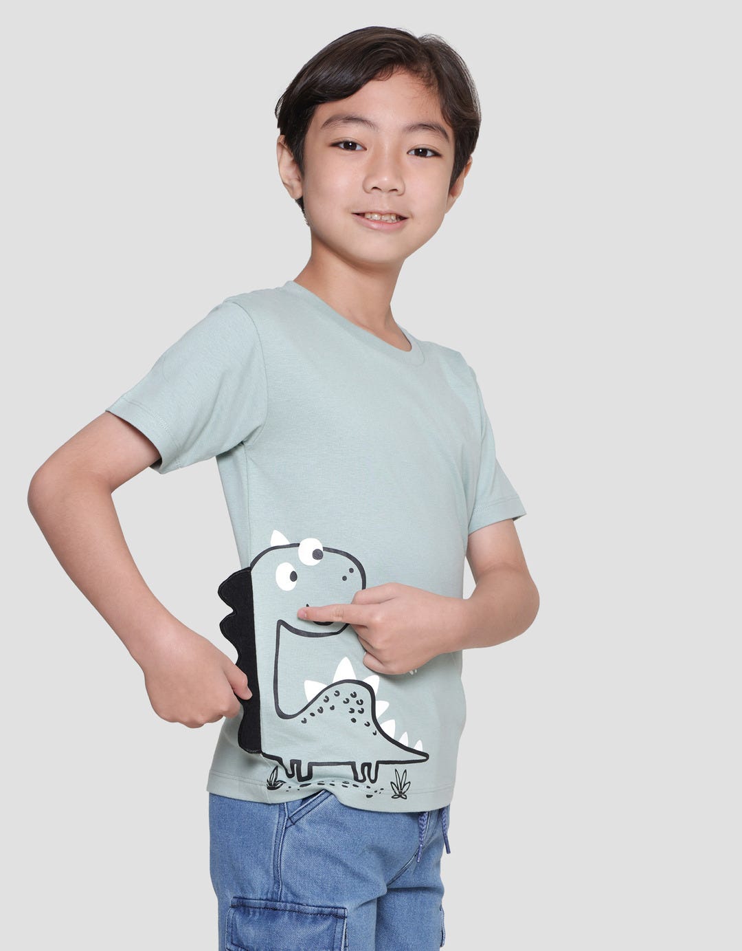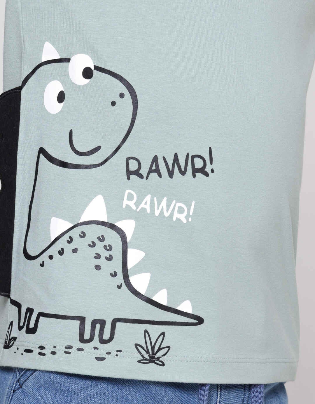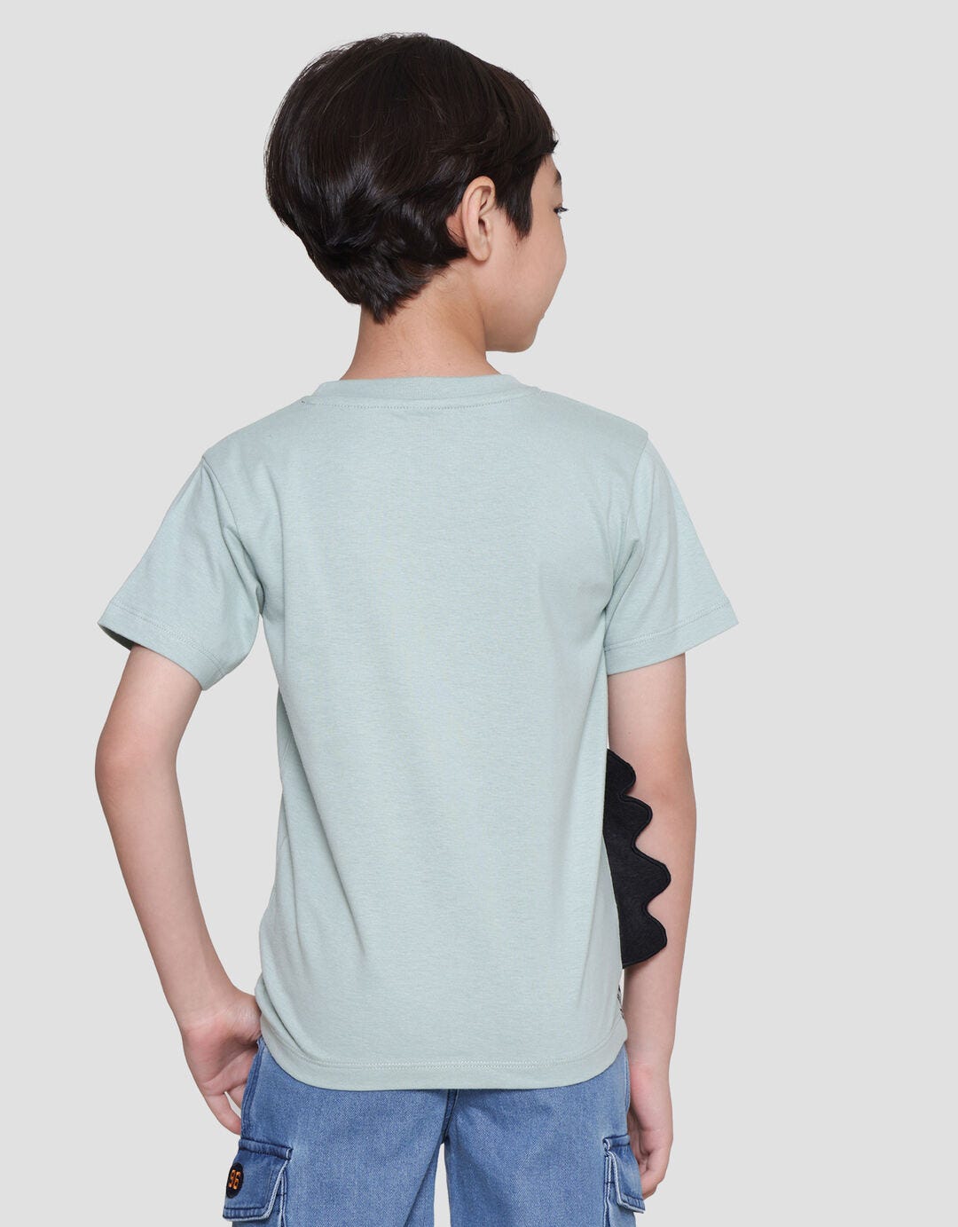 Little M Solid Combed Dino Roar Application Boys Short Sleeve T-Shirt