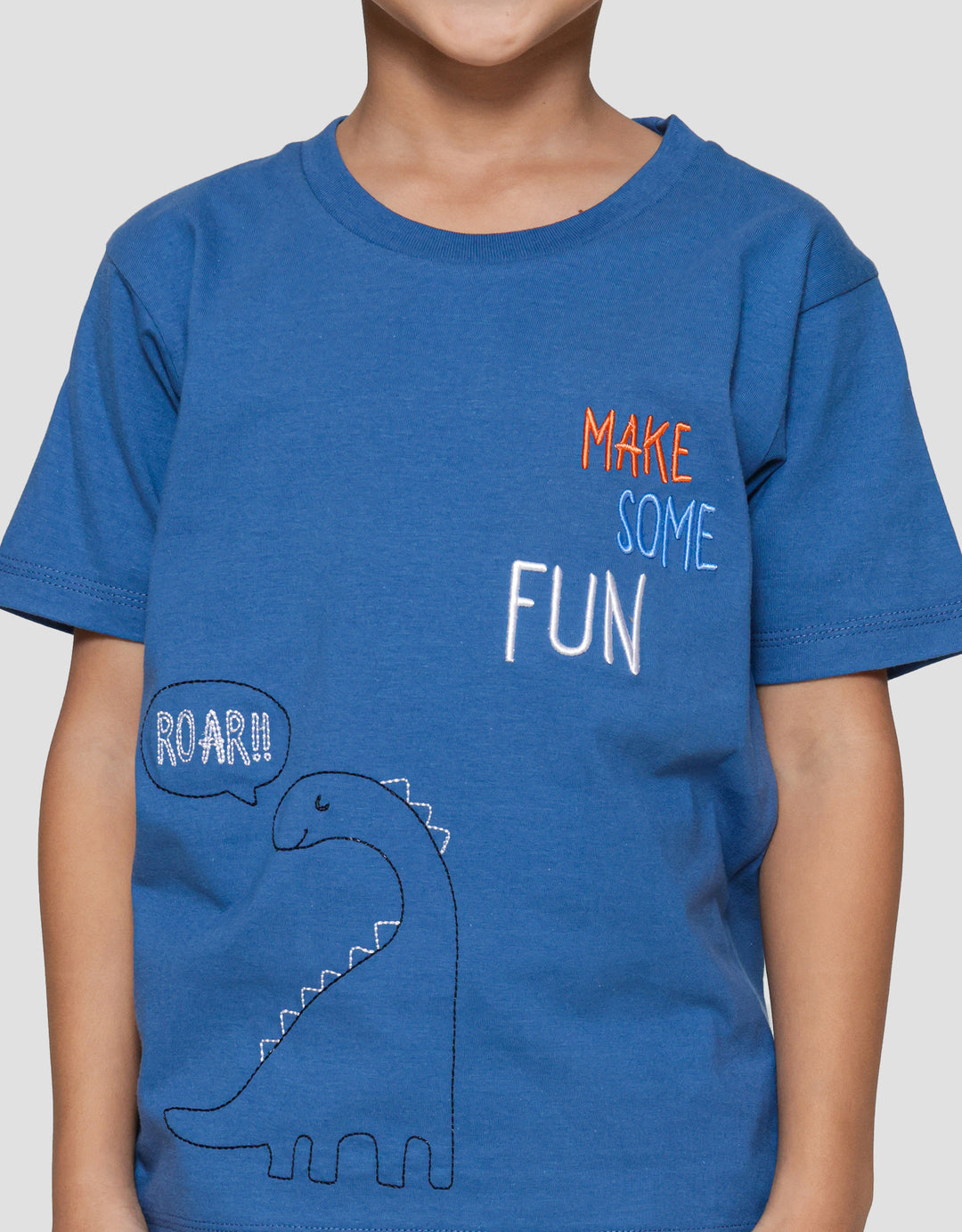 Little M Solid Combed Stitch Dino Kaos Lengan Pendek Anak Laki-laki