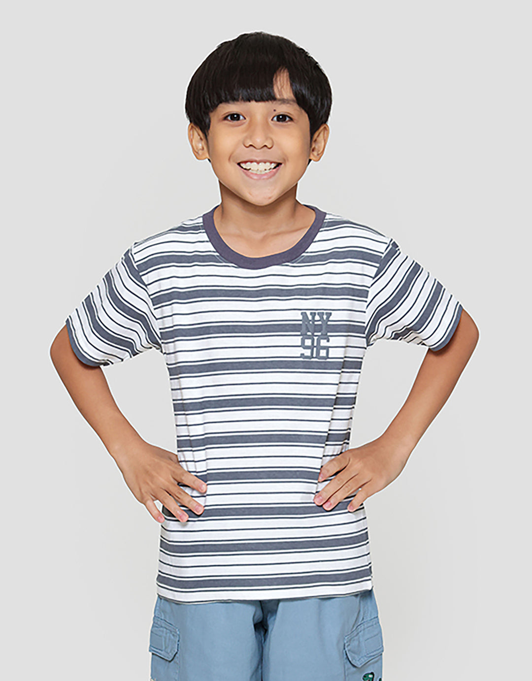 Kaos anak laki-laki dengan design yang simple dan casual, cocok untuk digunakan anak pada moment berharga mereka untuk menunjang penampilan anak menjadi lebih menawan.