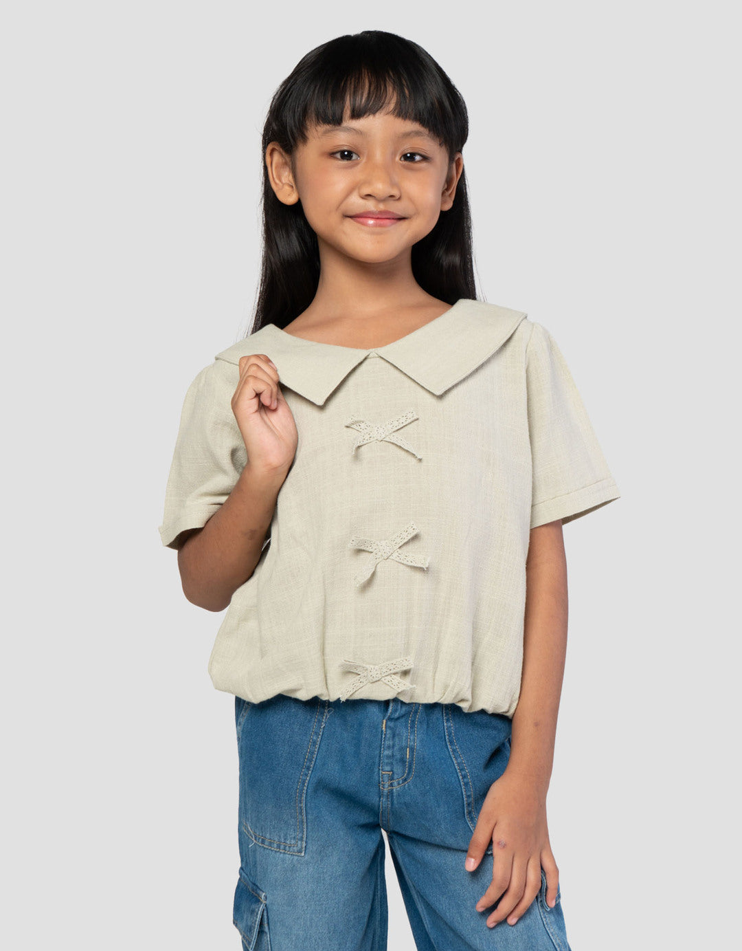 Blouse anak perempuan dengan model yang simple dan casual, cocok untuk digunakan pada moment keseharian dalam beraktivitas. Bahan yang berkualitas akan nyaman saat digunakan sepanjang hari.