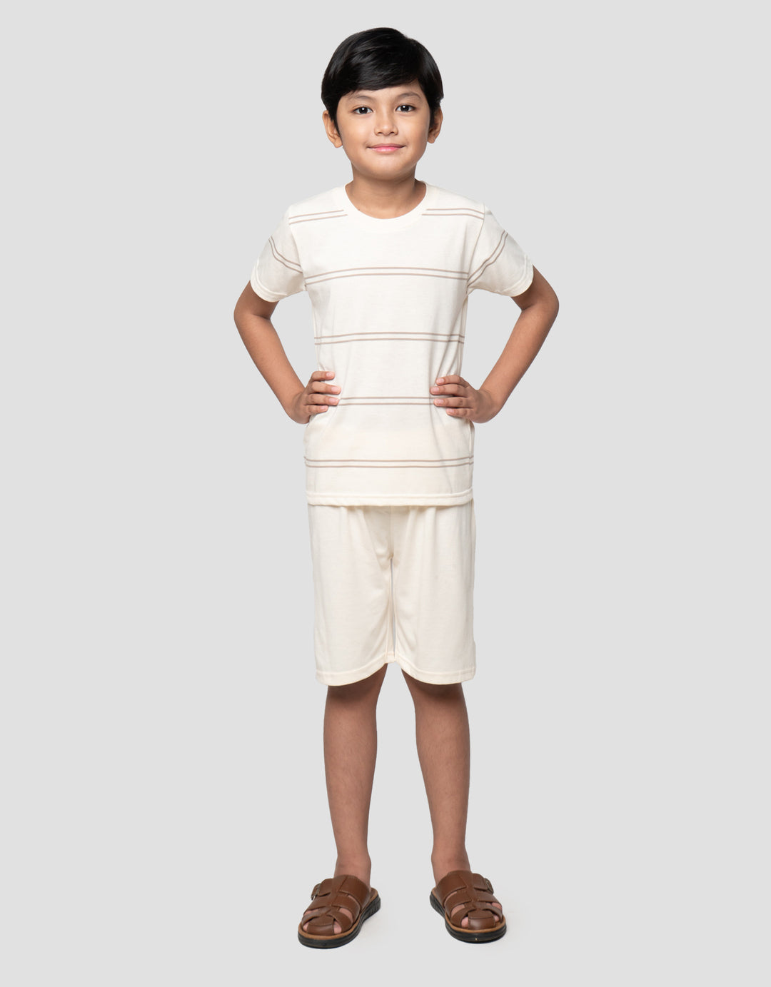 Little M Stripe Jeda Yarndye Pakaian Setelan Anak Laki-laki