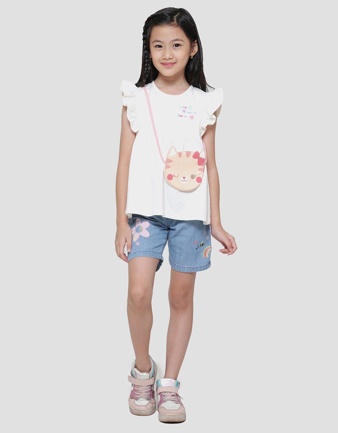 Little M Cute Cat Bag Short Sleeve T-shirt for Girls