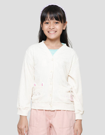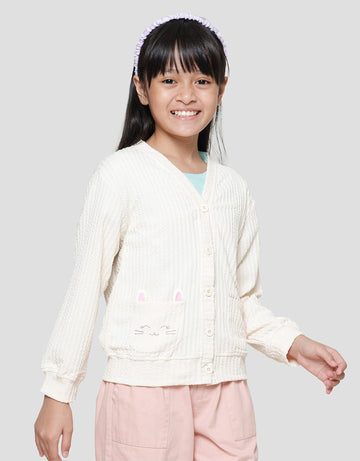 Little M Texture Fish Applique Pockets Girls Cardigan