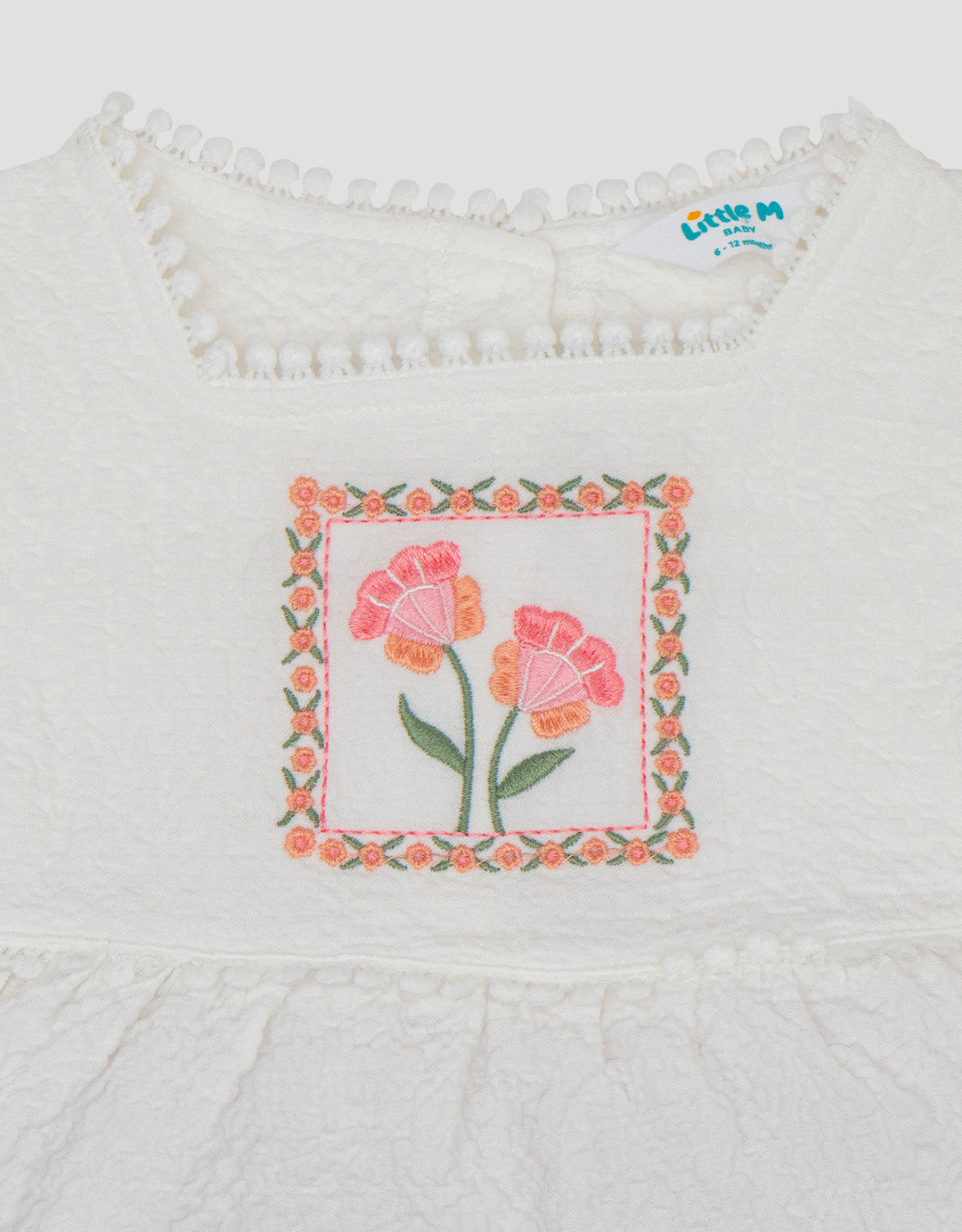 Little M Textured Bordir Flower Setelan Baju Muslim Bayi
