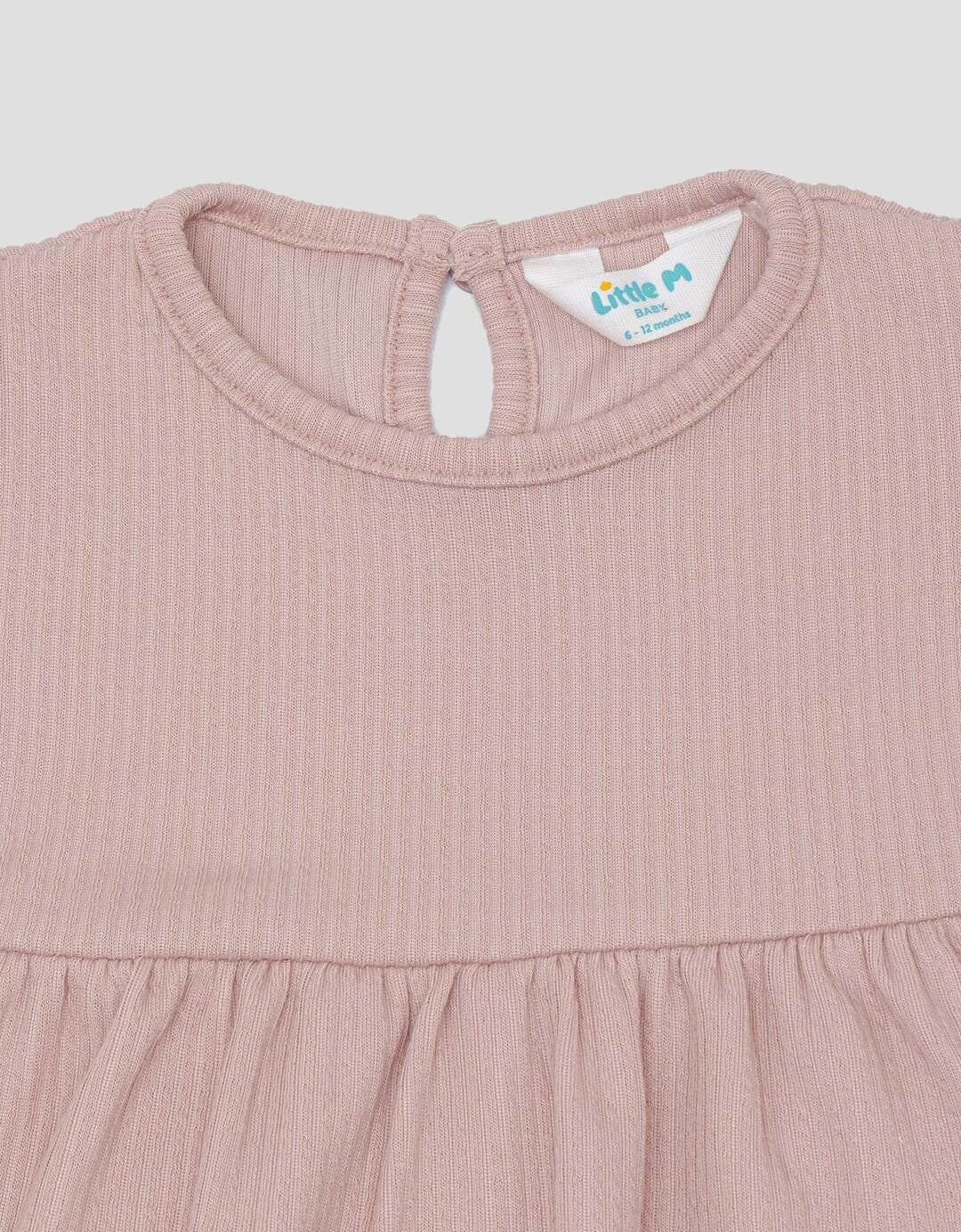 Little M Textured Rib Stripe Pakaian Setelan Anak Perempuan