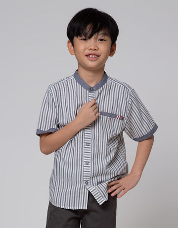 Little M Top Bottom Set Shirt Stripe + Crop Woven (Rib)