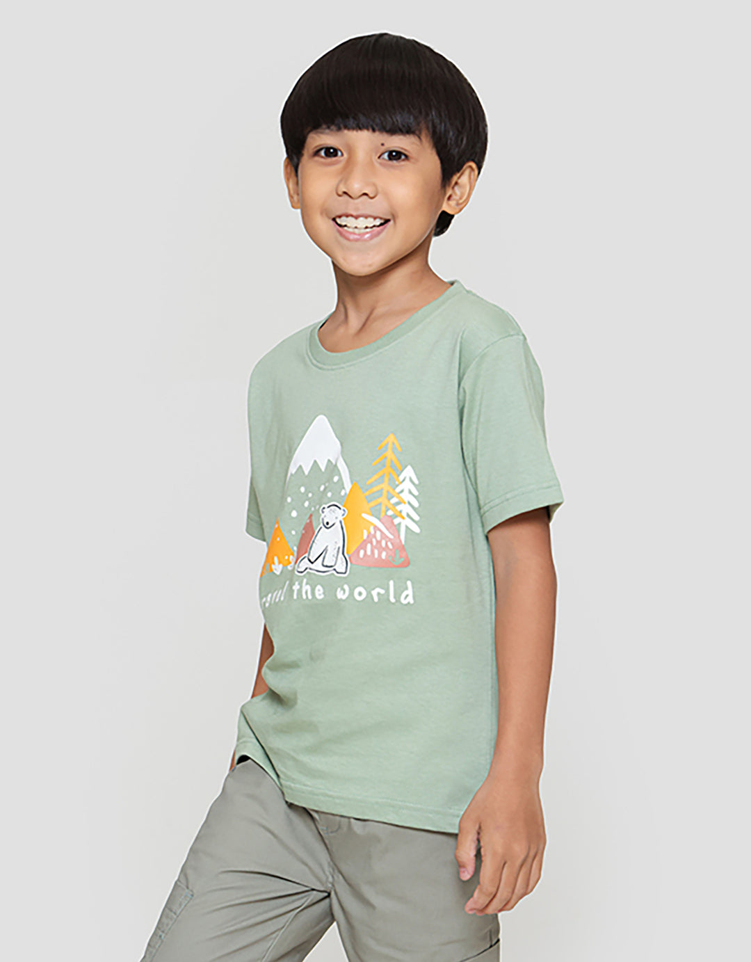 Kaos anak laki-laki dengan design yang simple dan casual, cocok untuk digunakan anak pada moment berharga mereka untuk menunjang penampilan anak menjadi lebih menawan.