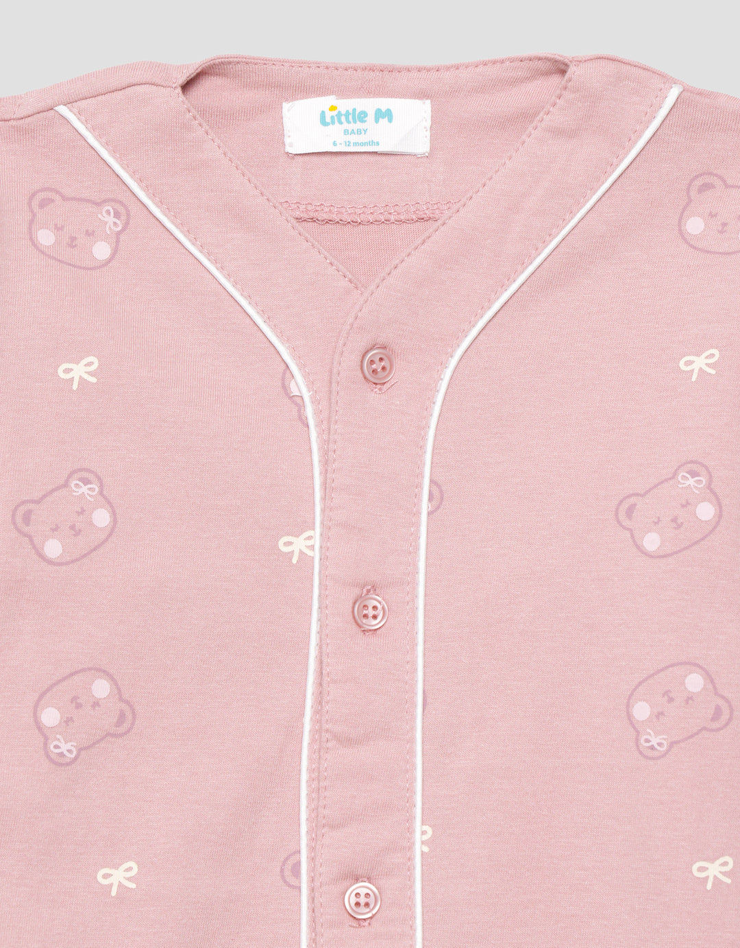 Little M V-Neck Fullprint Bear Setelan Piyama Anak Perempuan