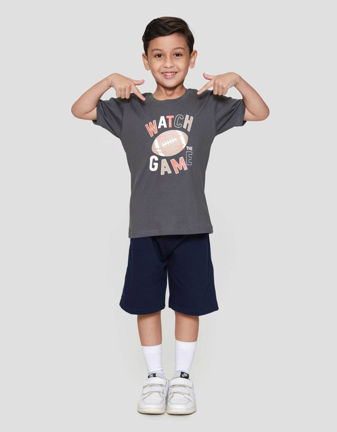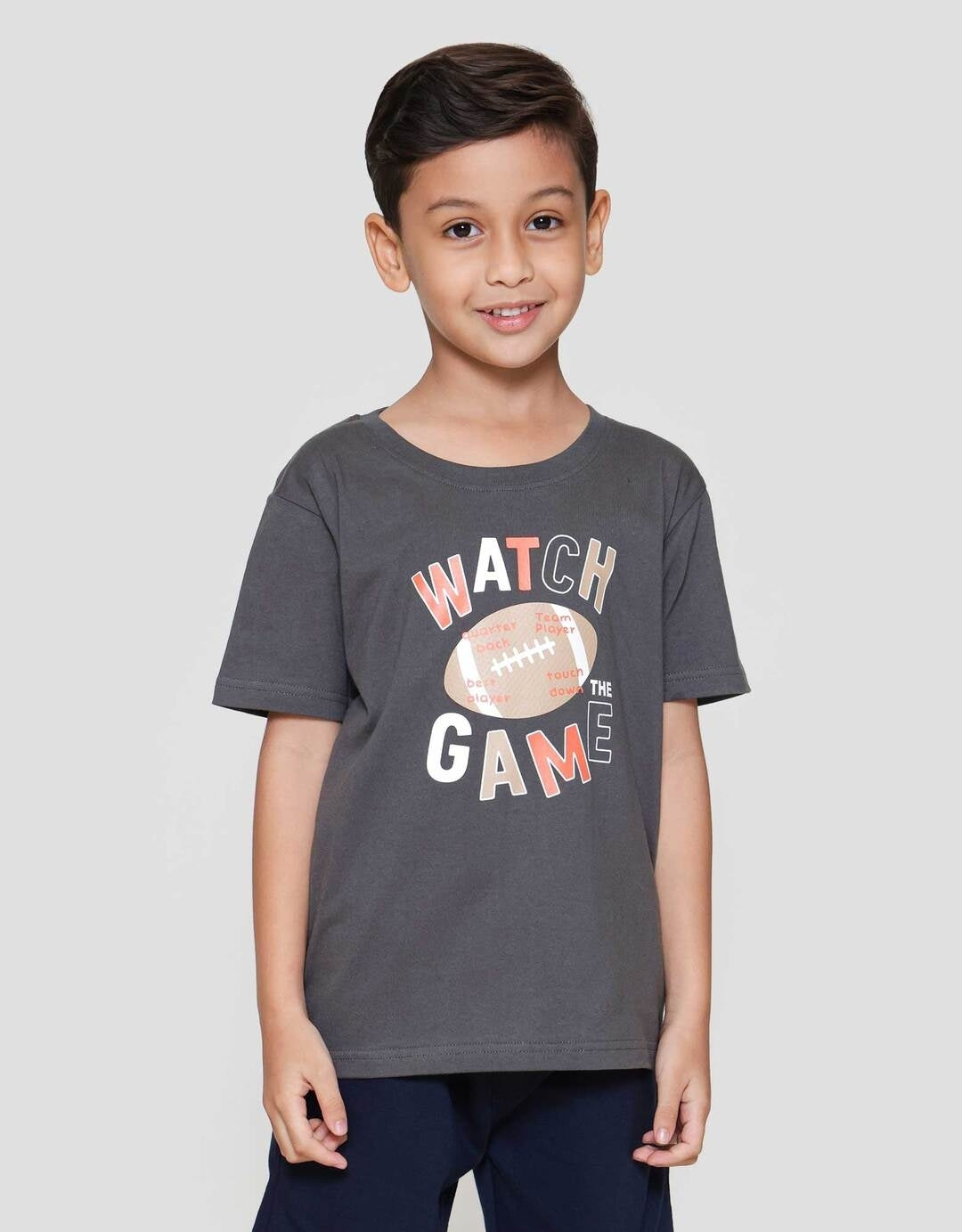 Kaos anak laki-laki dengan design yang simple dan casual, cocok untuk digunakan anak pada moment berharga mereka untuk menunjang penampilan anak menjadi lebih menawan.