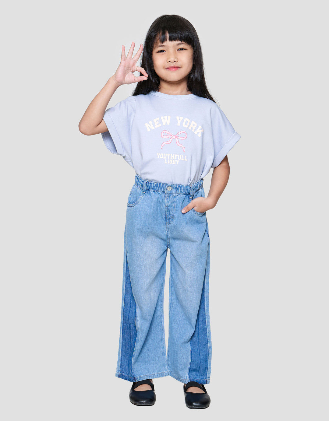 Little M Wide Leg Side 2 Tone Celana Denim Anak Perempuan