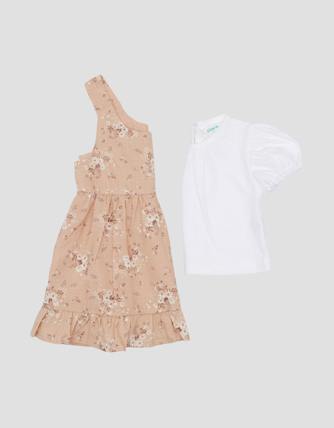 Little M Woven 2Pc Flowers Linen Slub Midi Dress Bayi