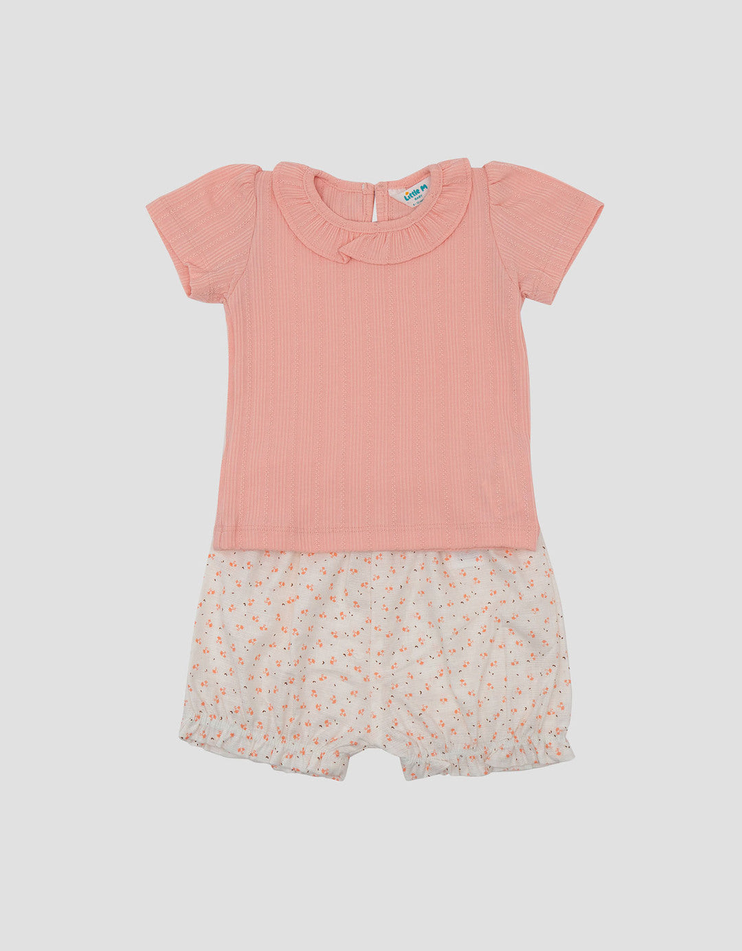 Little M Woven Mix Rib Knit Pakaian Setelan Bayi