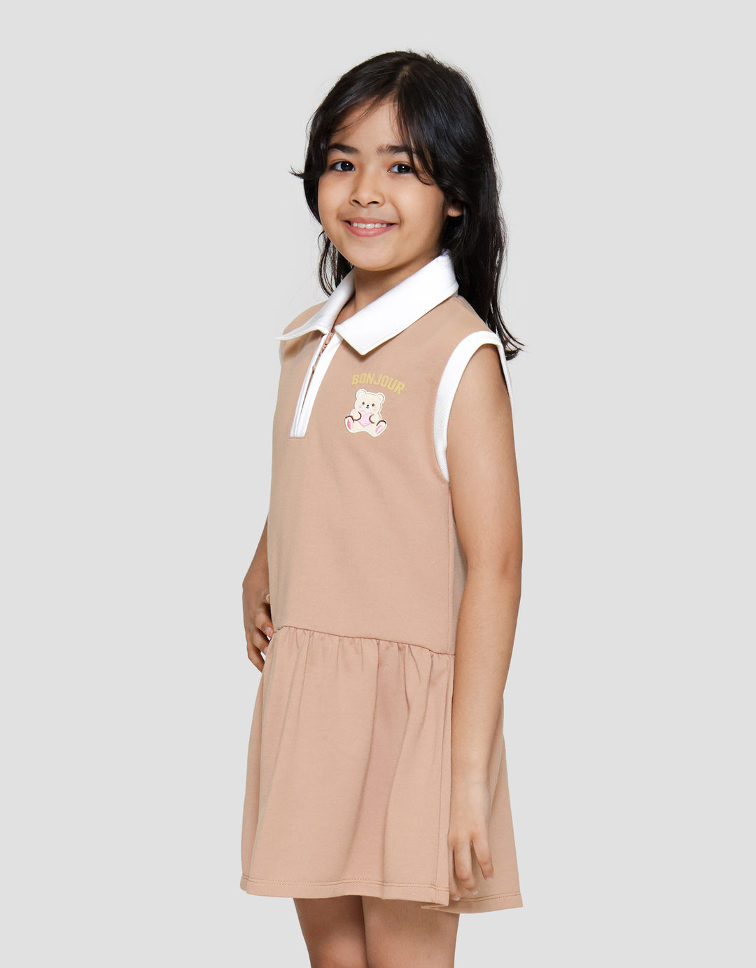 Little M Zipper Aplikasi Bear Midi Dress Anak Perempuan