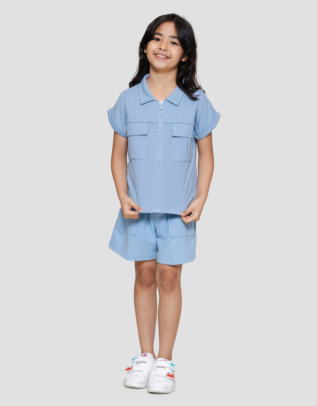 Little M Zipper Kantong Kargo Kemeja Anak Perempuan