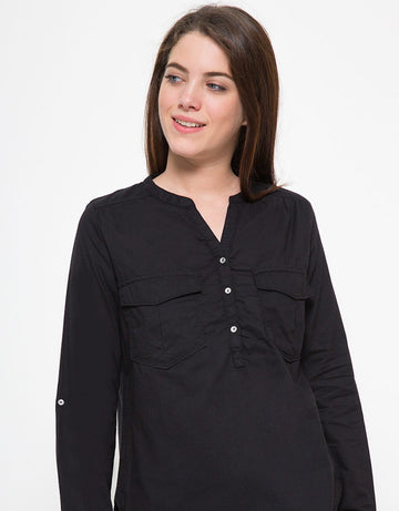 Logo Jeans Big Pocket Woman Blouse. Casual blouse for women who like simple style. Sweet big pocket details with neutral colors that are so timeless will make your appearance more relaxed and safe. Logo Jeans Big Pocket Woman Blouse is suitable when combined with your favorite skinny pants and ankle boots. Quality materials will be comfortable and soft on the skin when used all day long.