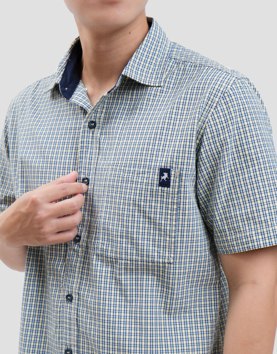Lois Print Check Kemeja Lengan Pendek Pria