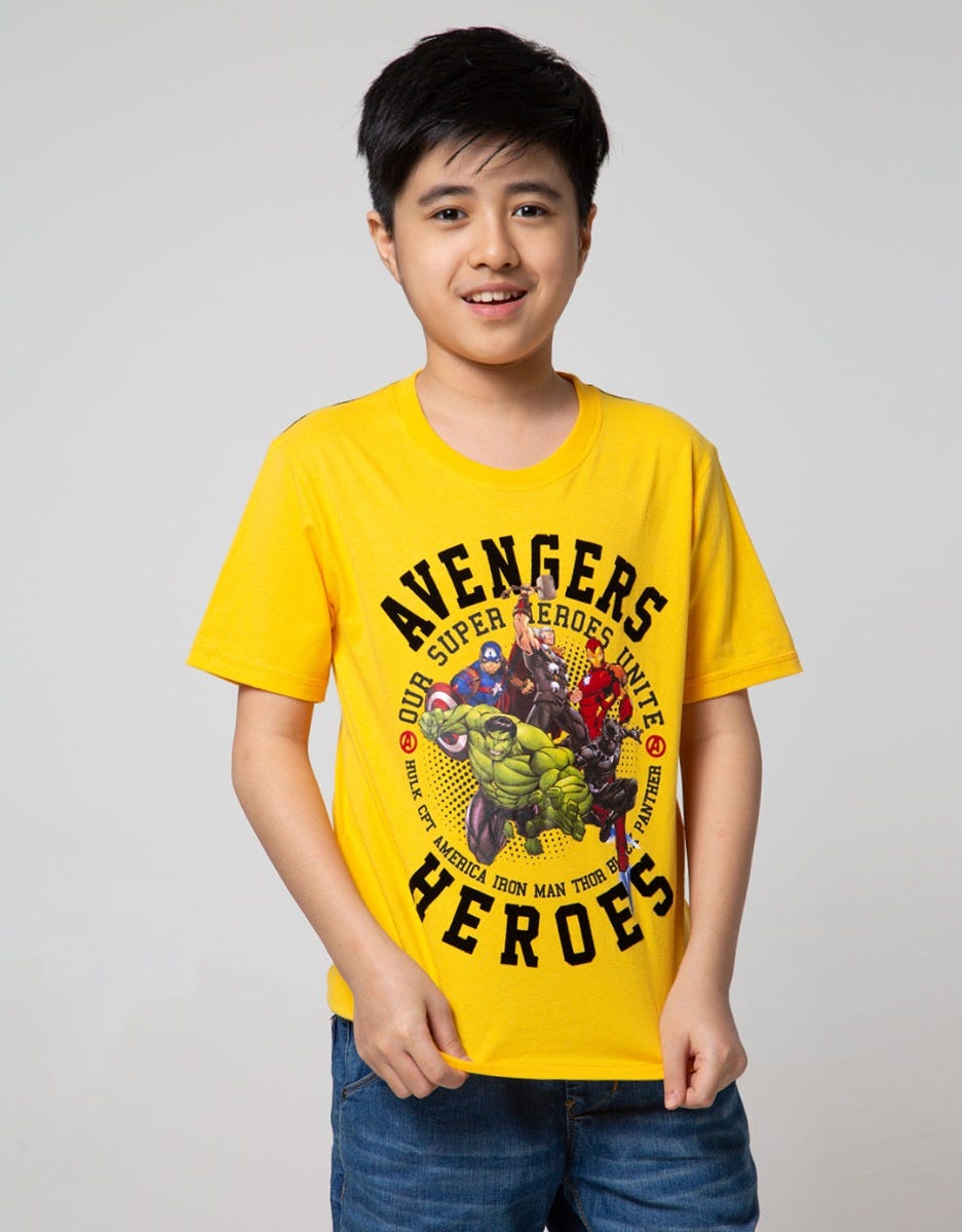 Marvel T-shirt is here to complement quality children's t-shirts. Using comfortable Cotton material. This material is very soft and absorbs sweat. The design is attractive, and is very suitable to be combined with any colored bottoms.