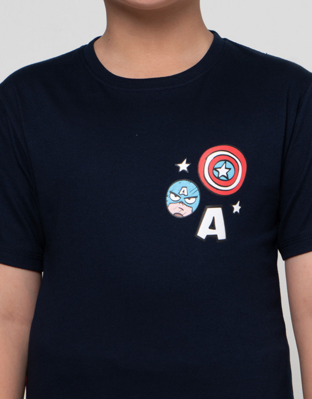 - Detail grafis print Captain America & Shield